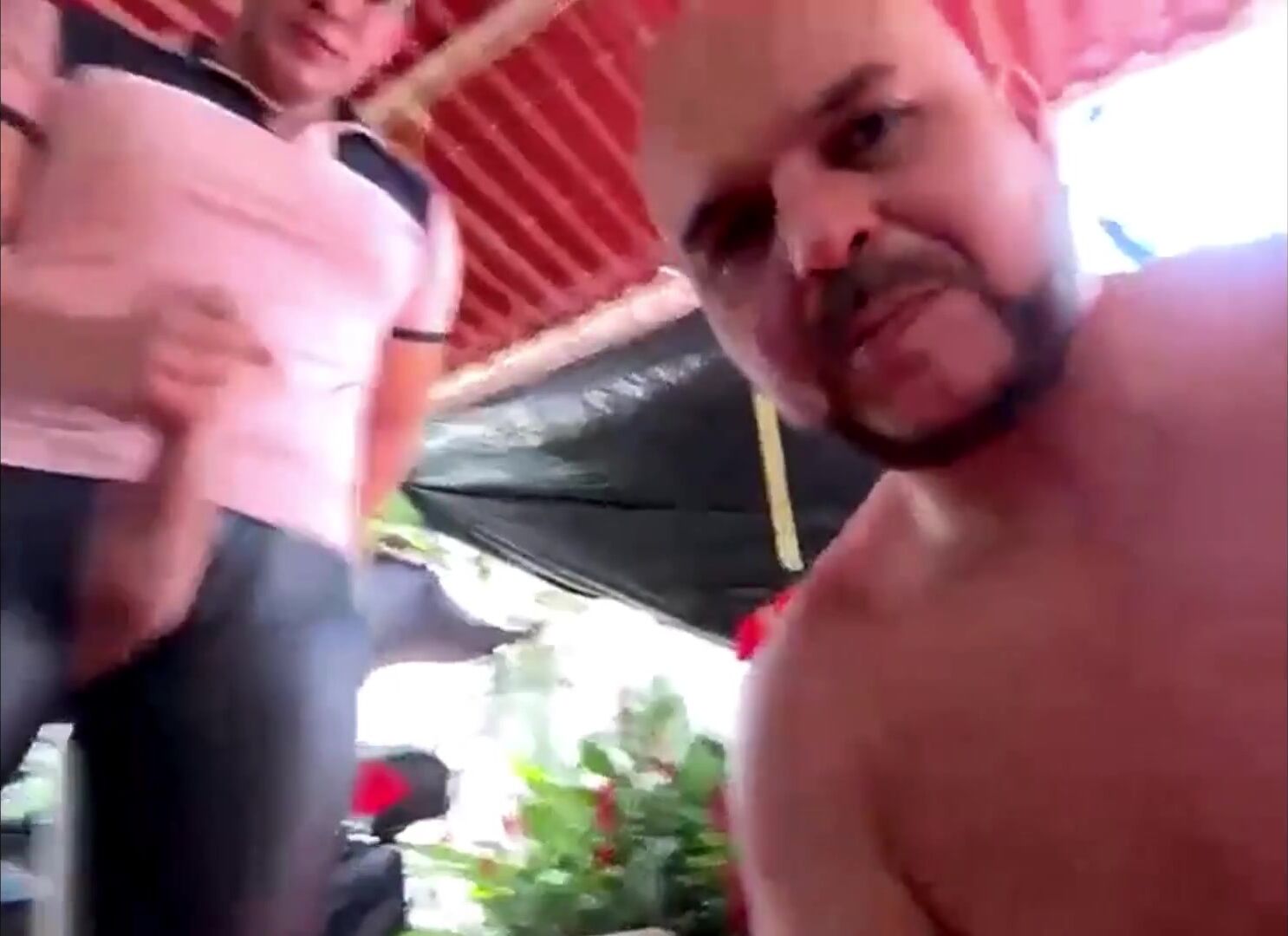 Super-steamy nail time with monstrous jizm explosions dressed in leather shoes and trousers, at the backyard of the building