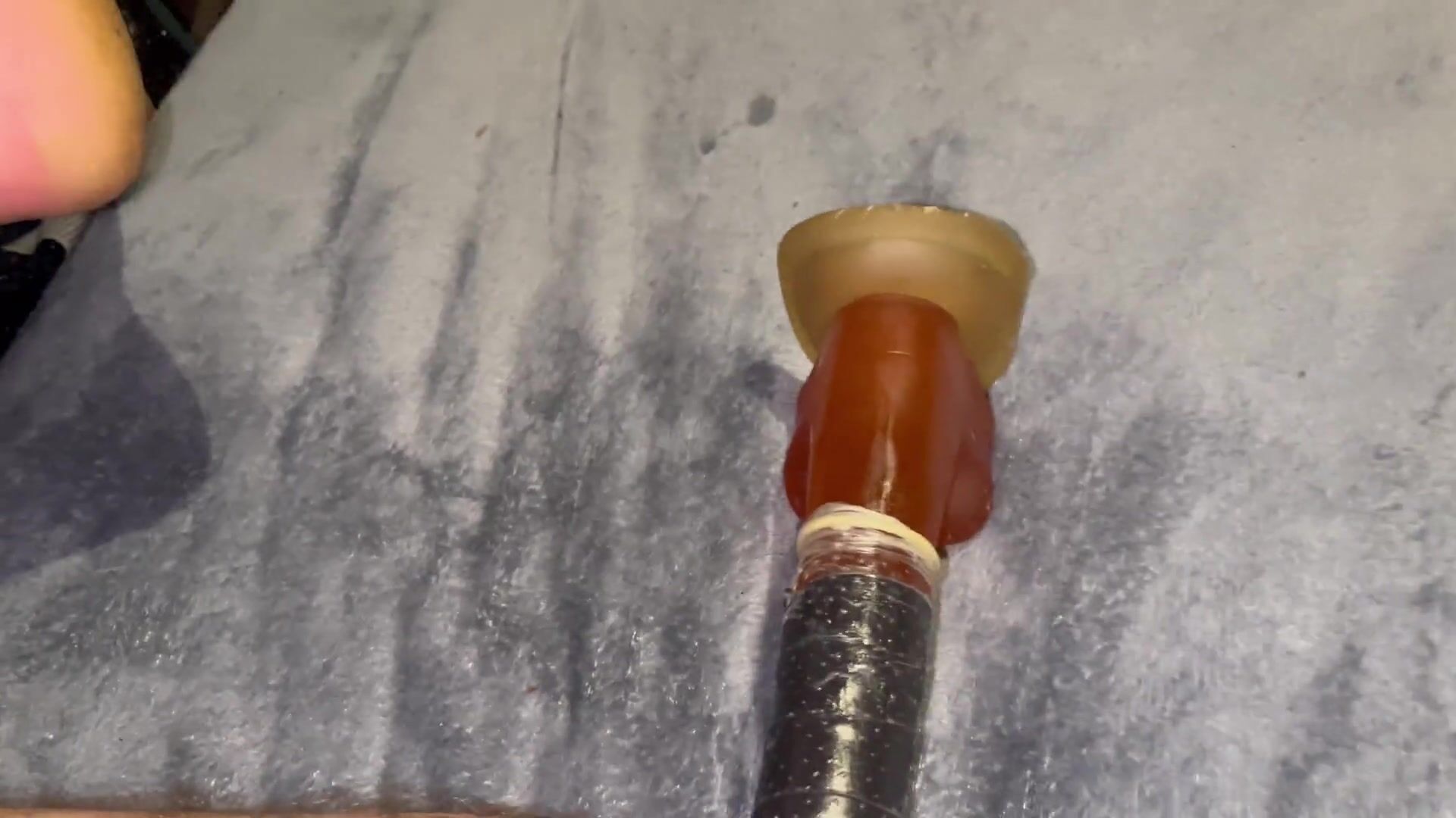 Femboy gets his butt spread with giant fake penis while dressed in milky underwear
