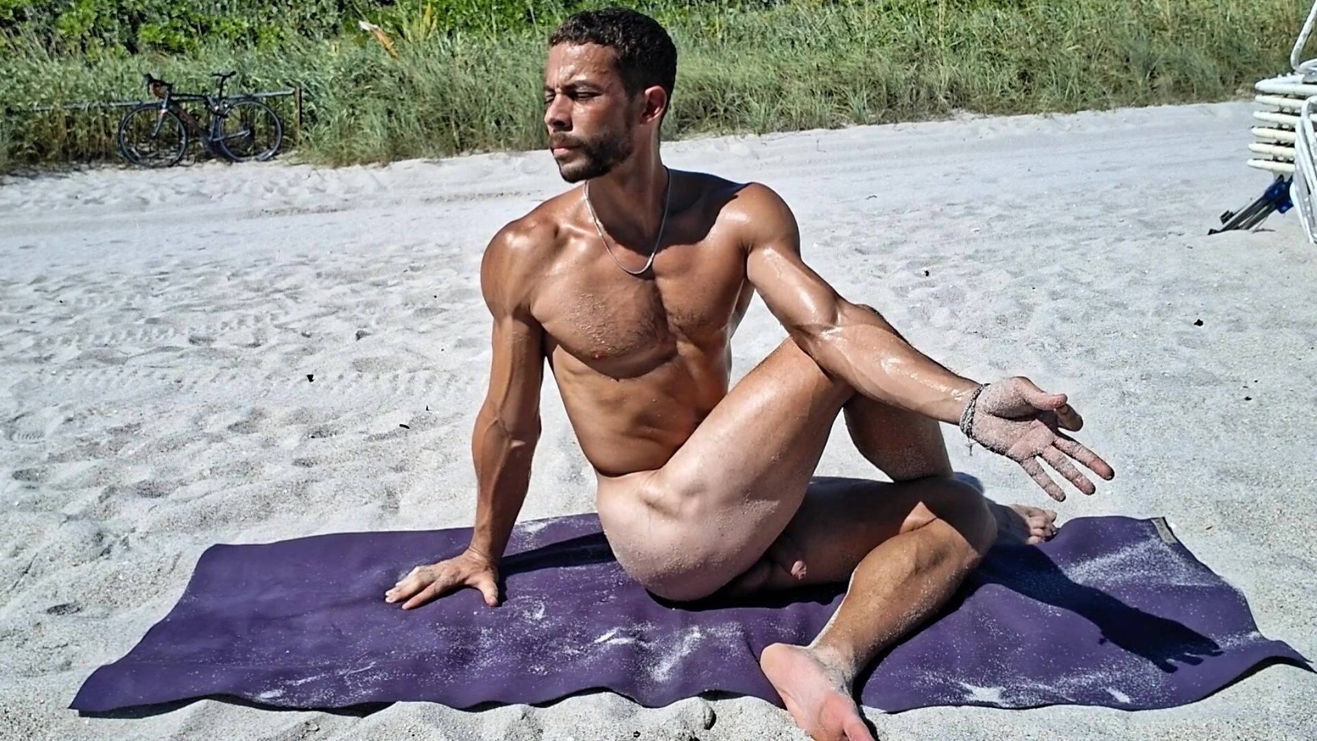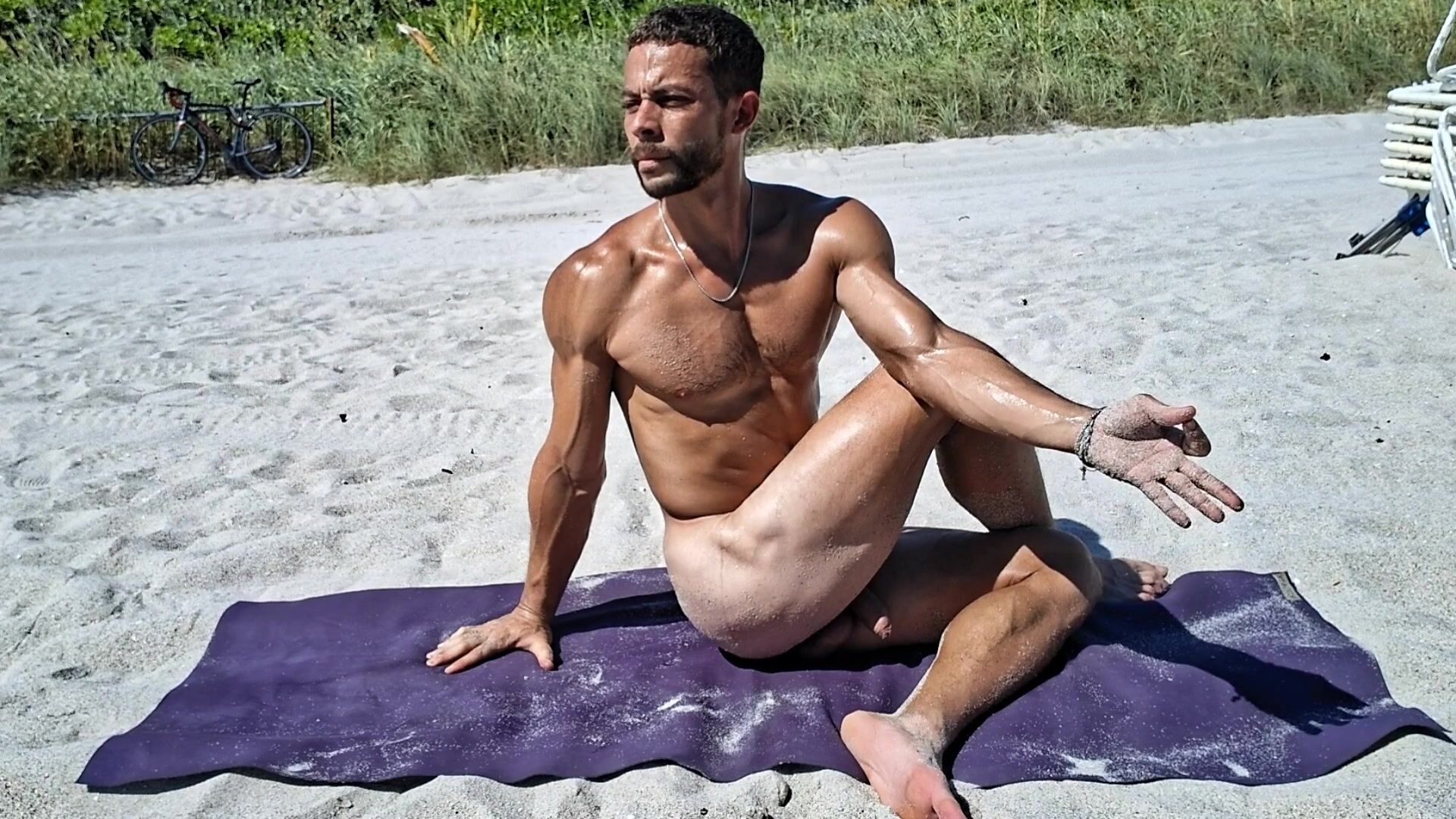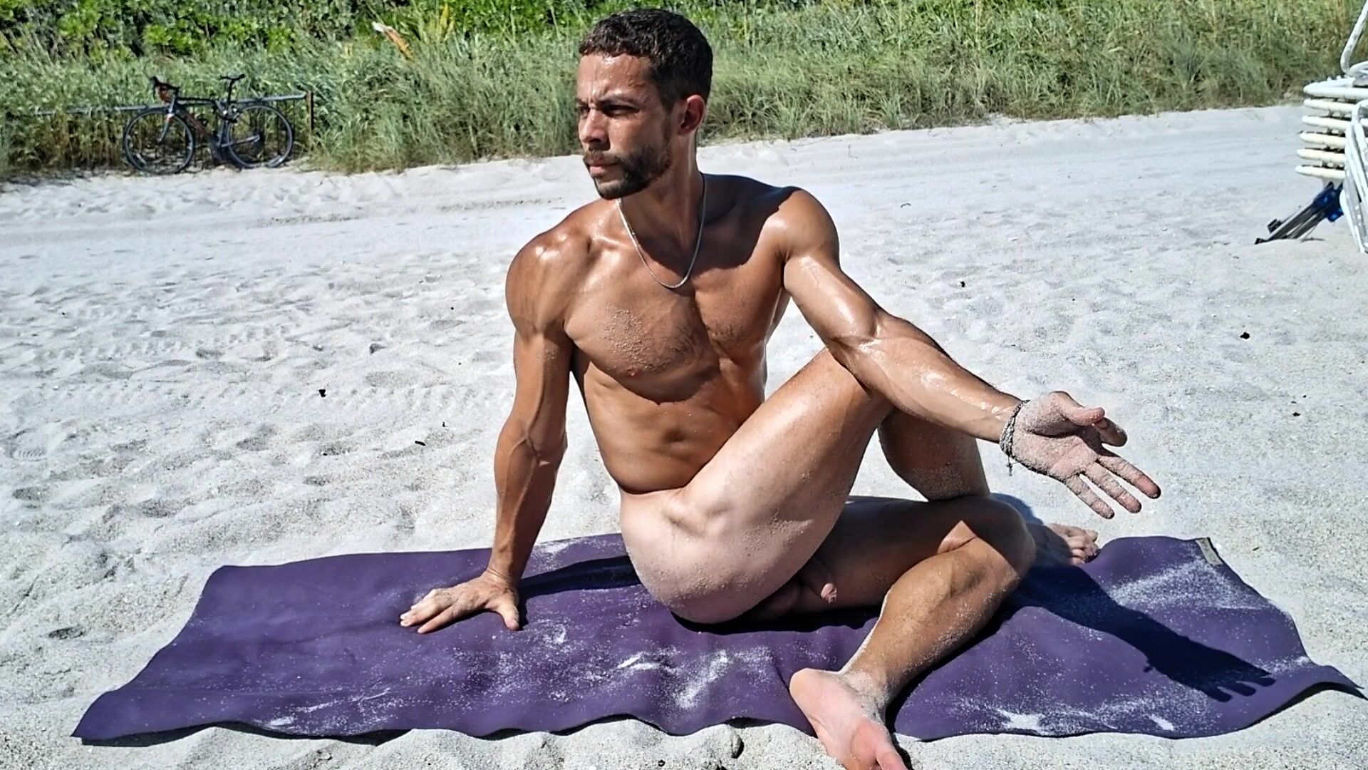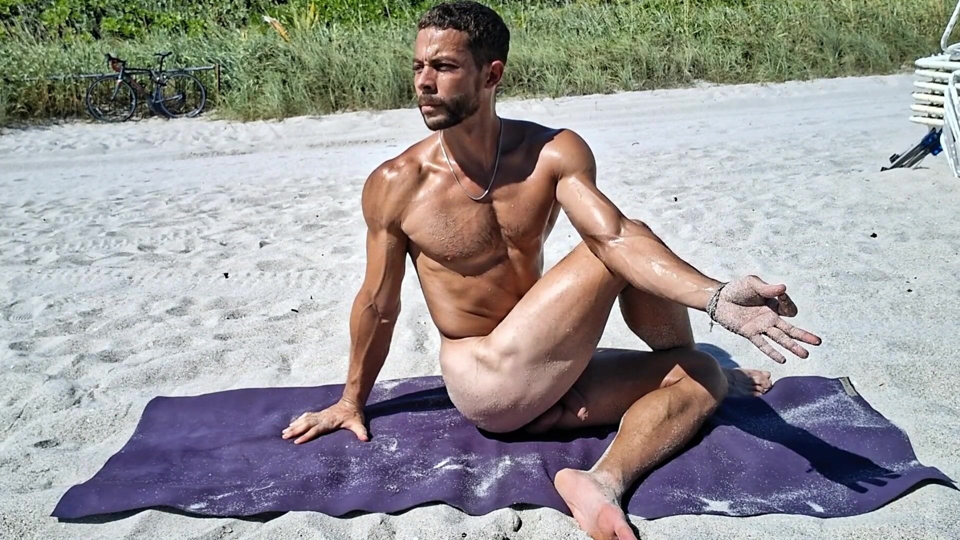 Bare Beach Yoga Warm Mexican Jock Twisting Seated Thigh Open up