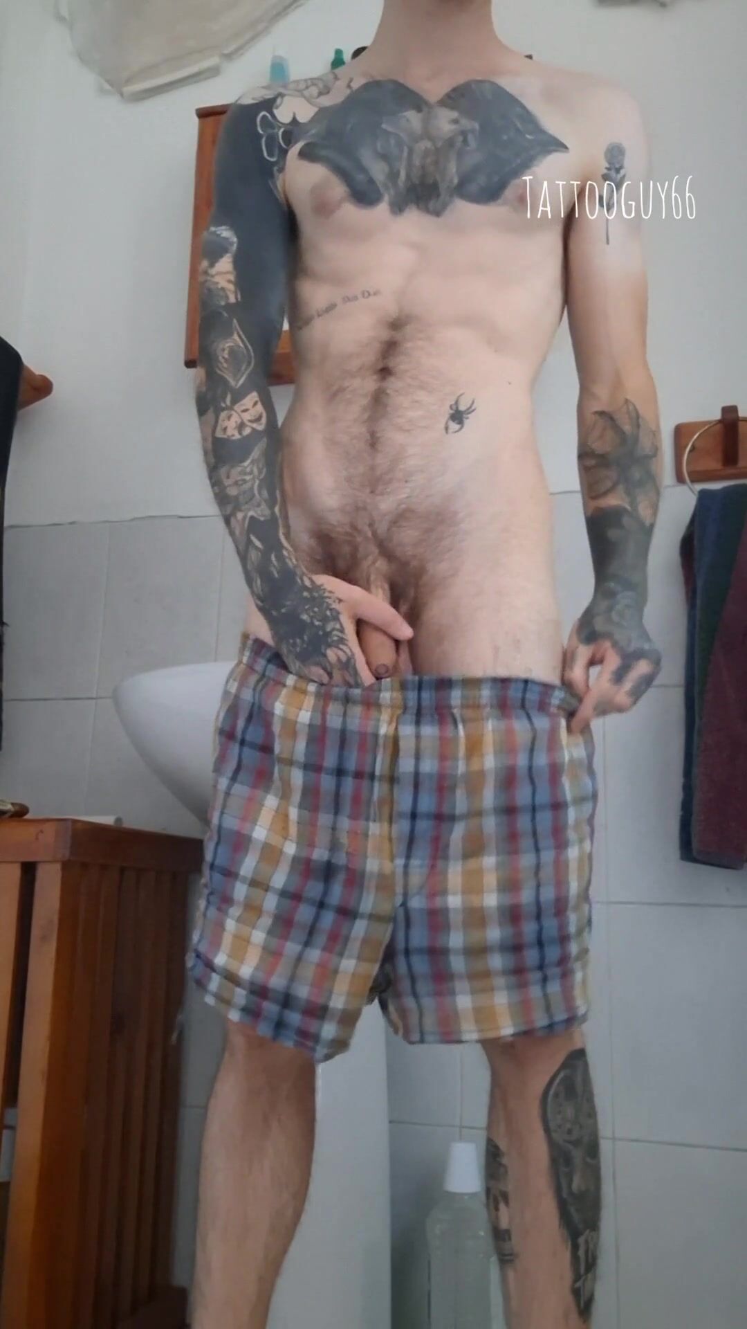 Inked lean dude uncircumcised boner