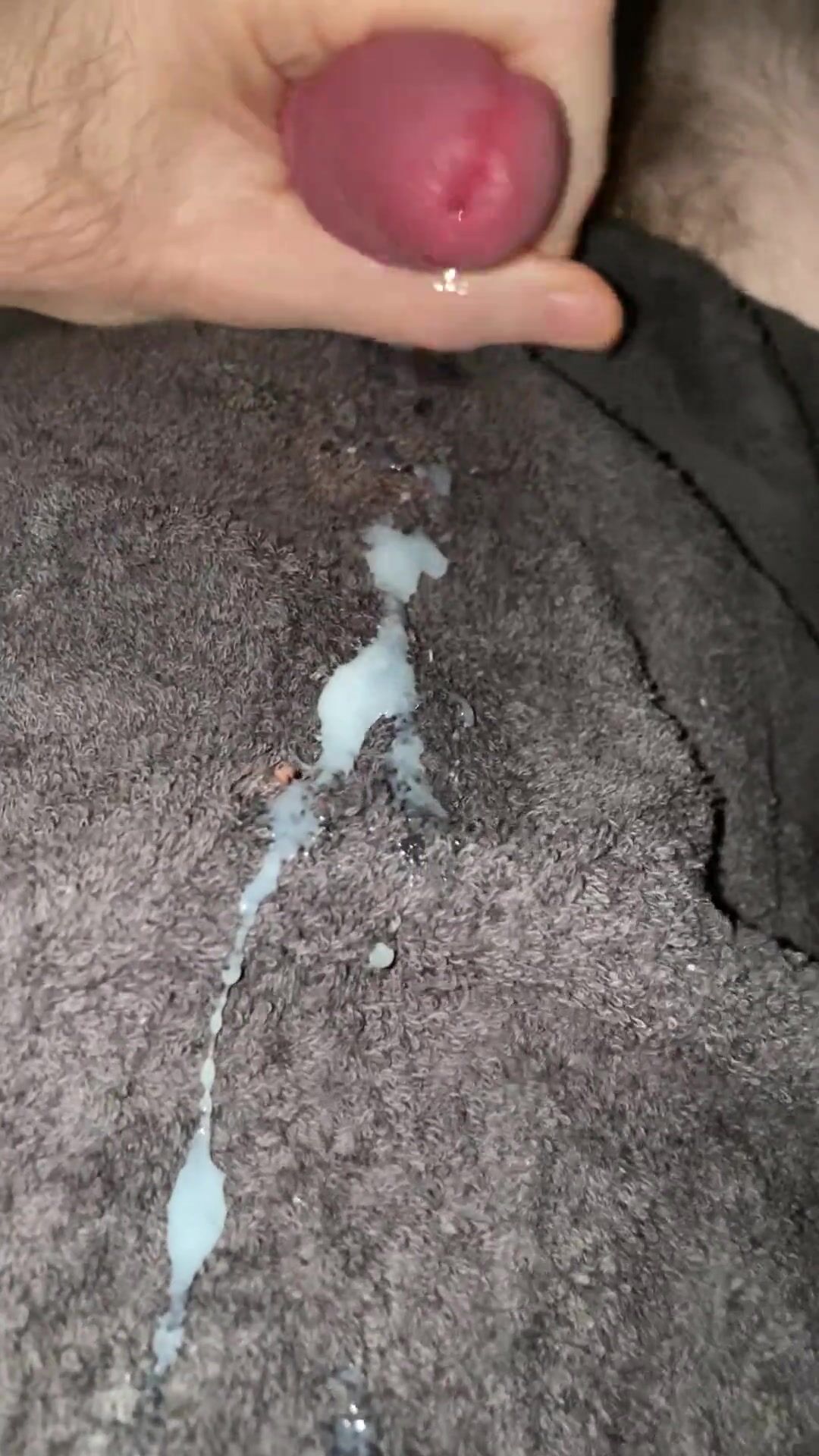 Sharing another huge cream-colored cumshot on a ebony towel