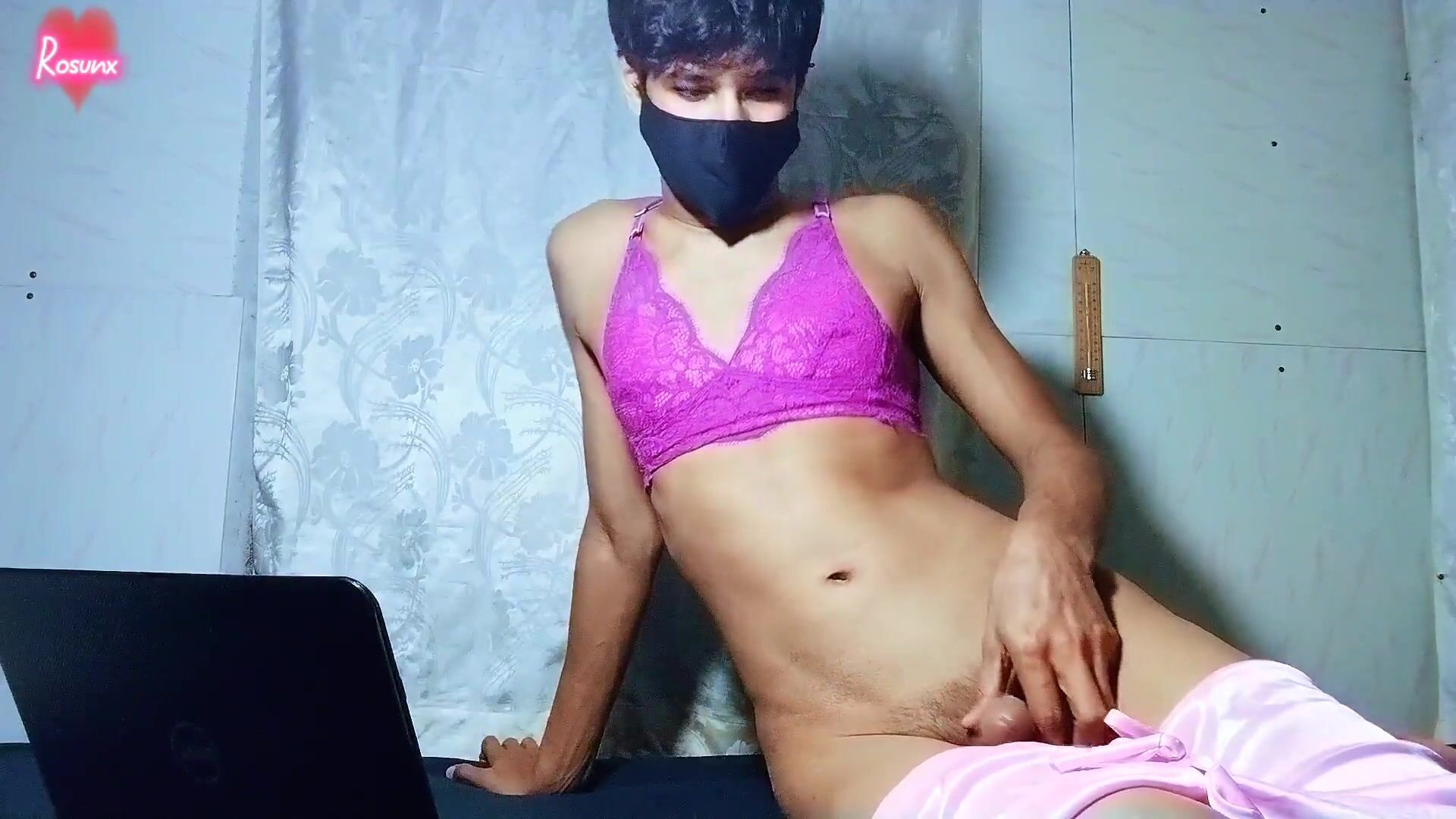 Super-naughty Femboy Masturbating His Rock hard Salami in Stellar Miniskirt & Socks