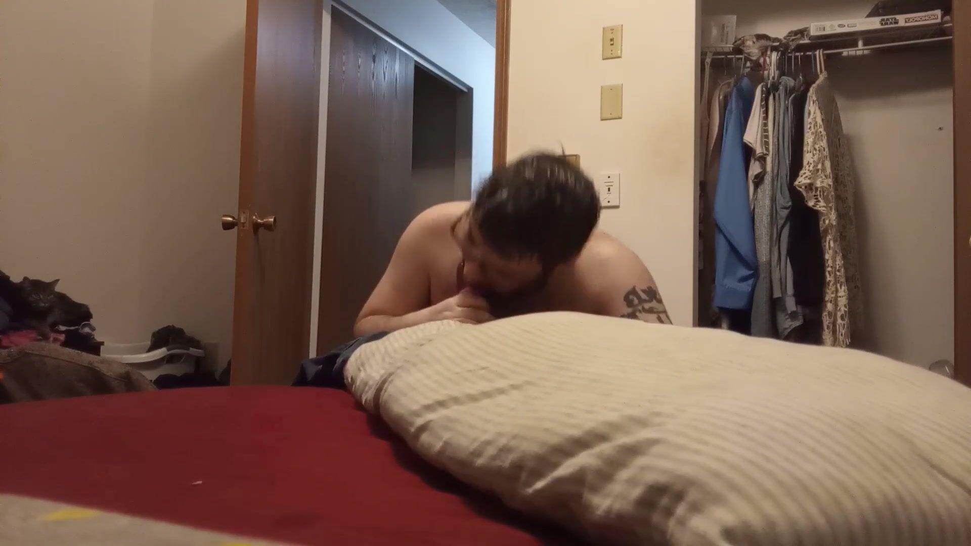 Deep-throating off a homemade dork
