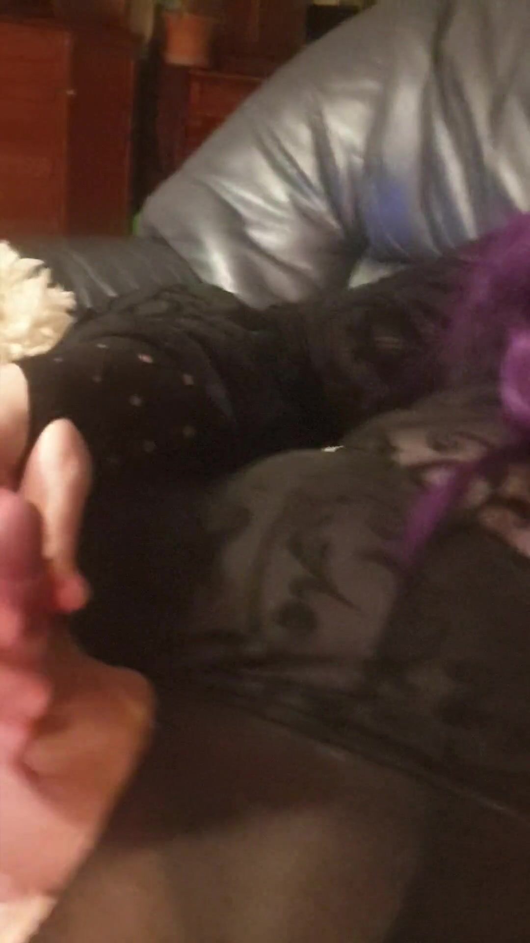 Purple haired sissy mega-slut loves to spunk all over herself