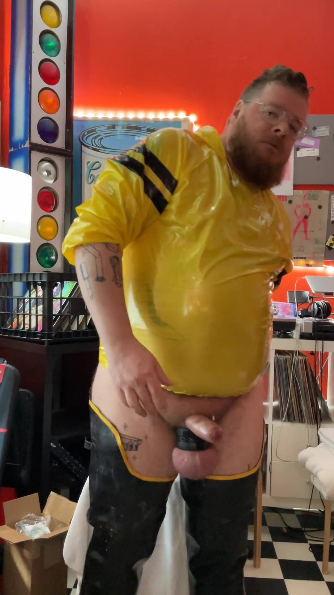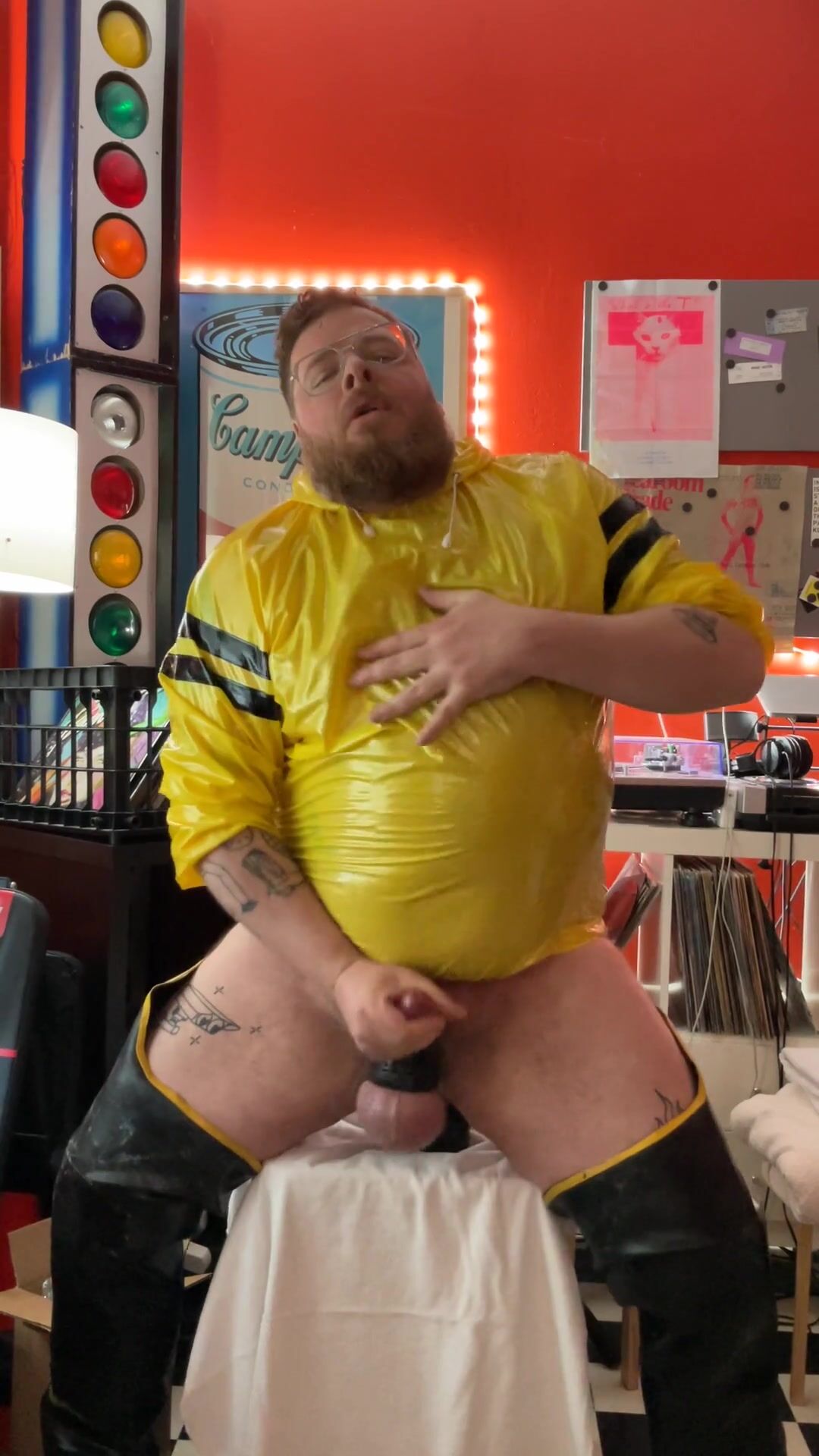 *With Sound* Round condom otter catapults his saline inflated humungous nads, caresses his chunky abdomen and smashes himself