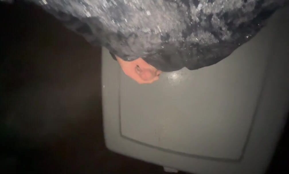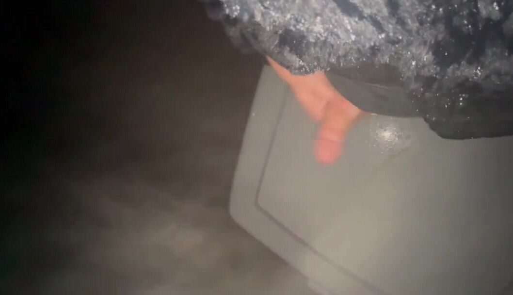 Peeing and toying with my spunk-pump on the back of my pickup van in the moonlight outside