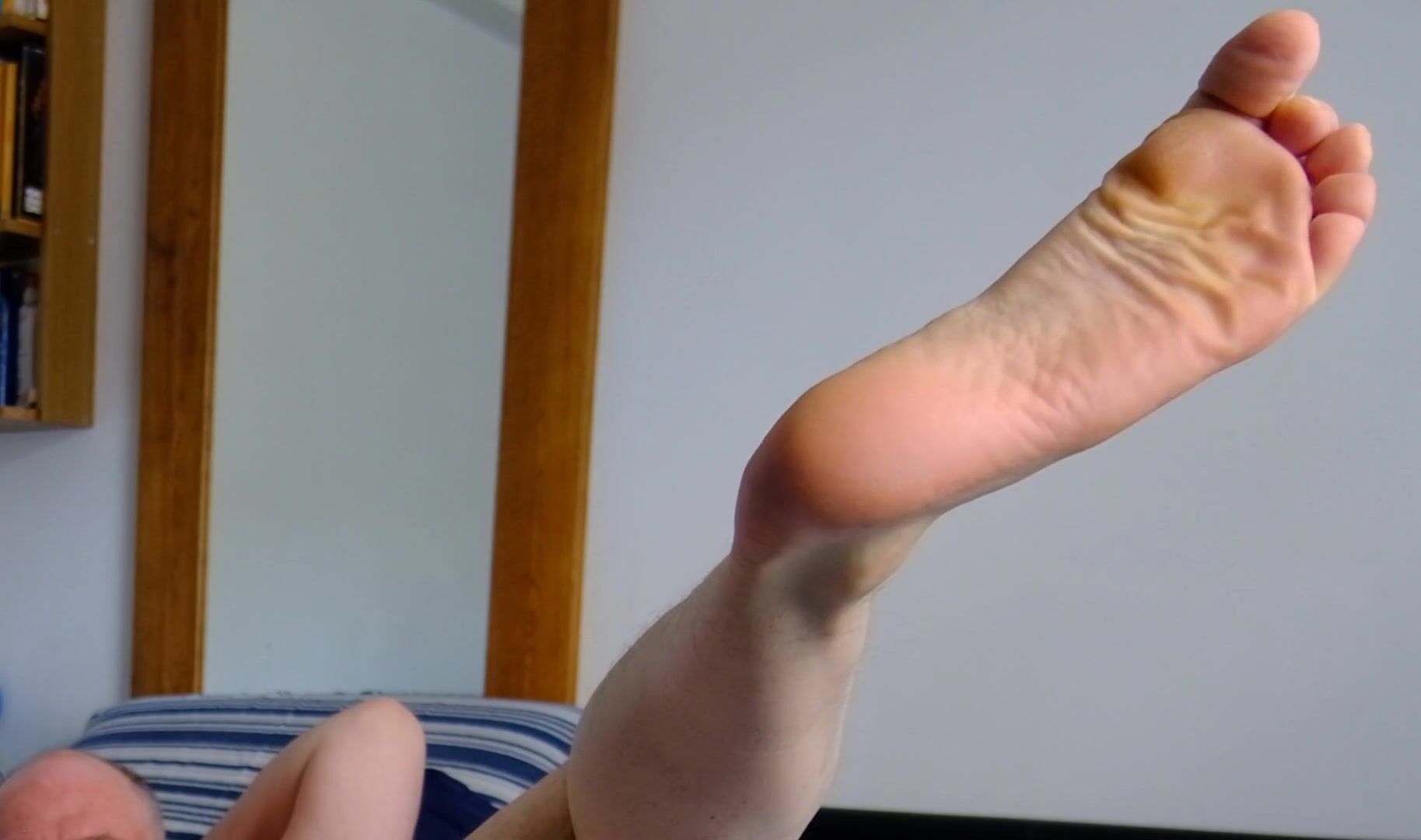 Brit fellow bare stroking as he flash his soles, furry spear and rectum and touches a sole on his swell uncircumcised beefstick