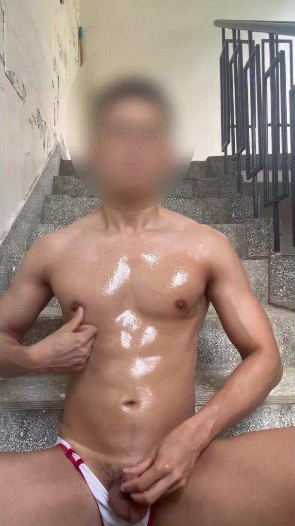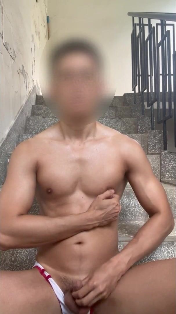 Chinese Korean Muscle Jock Public Jacking off on Stairs Utter flick fasten in bio
