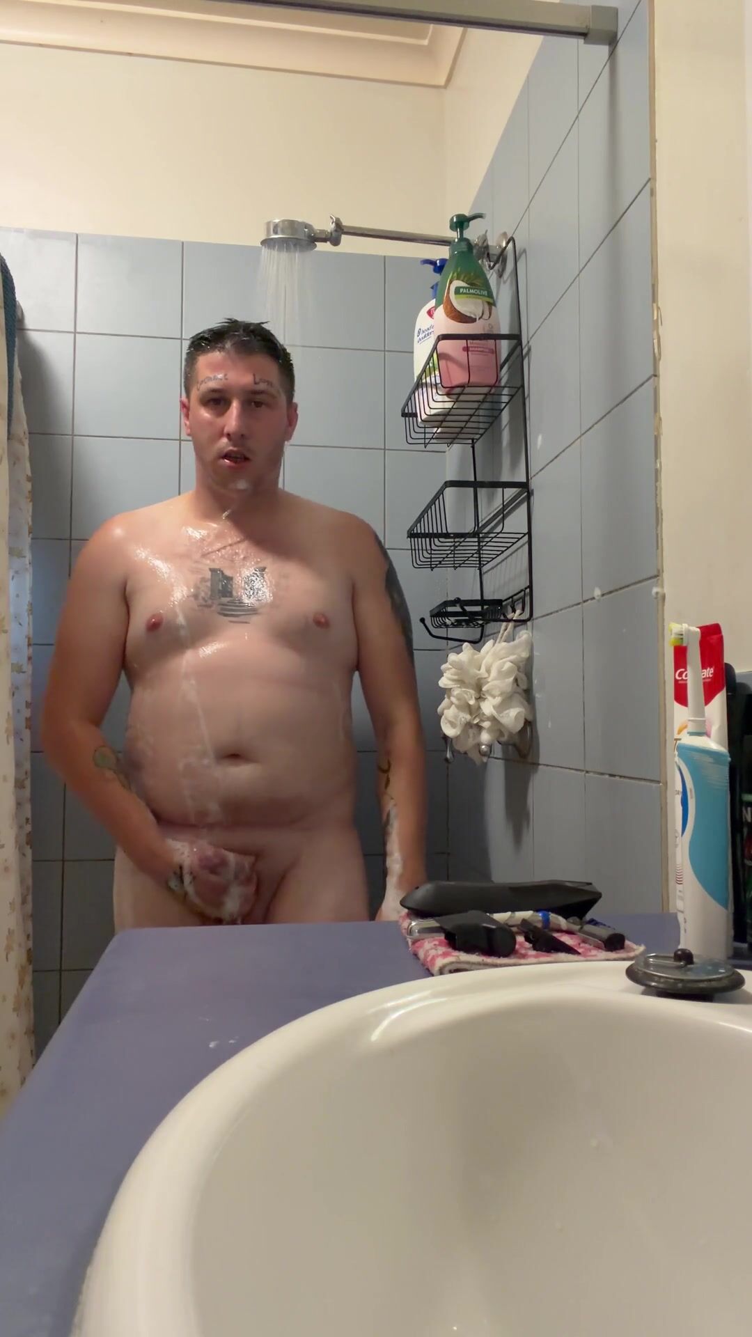 Having a bathroom and wedging electrical toothbrush in my grubby ass
