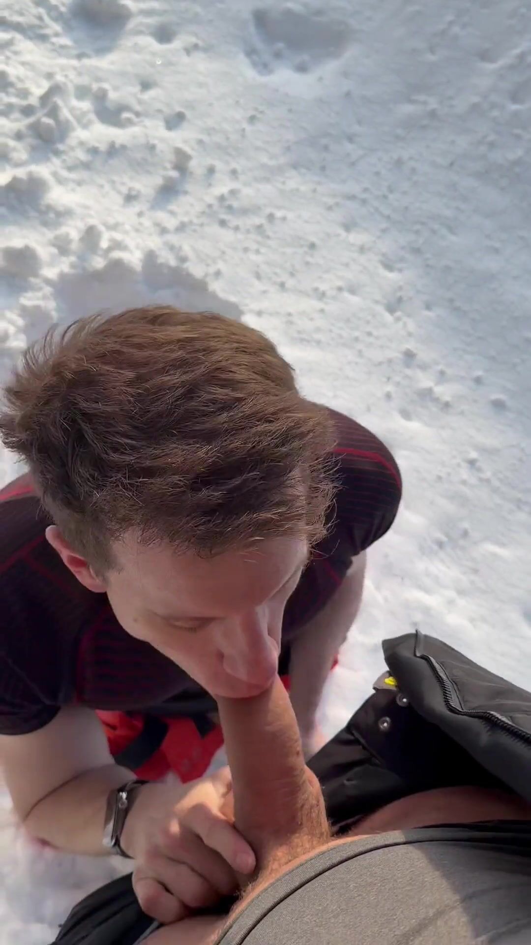 Nate Beauties deep throating Aaron Hugese in the snow