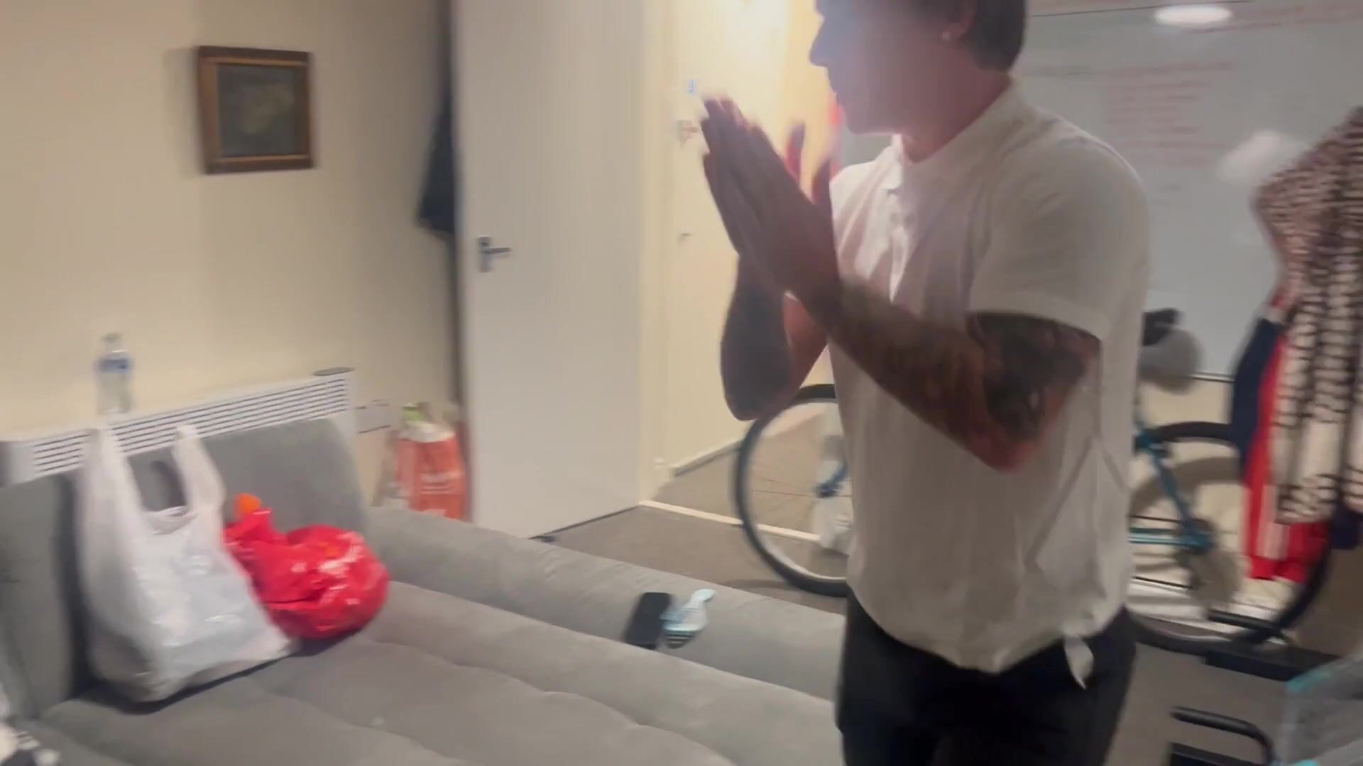 Insane Skool Fellow jizzes back to an empty building = empty ball-sac