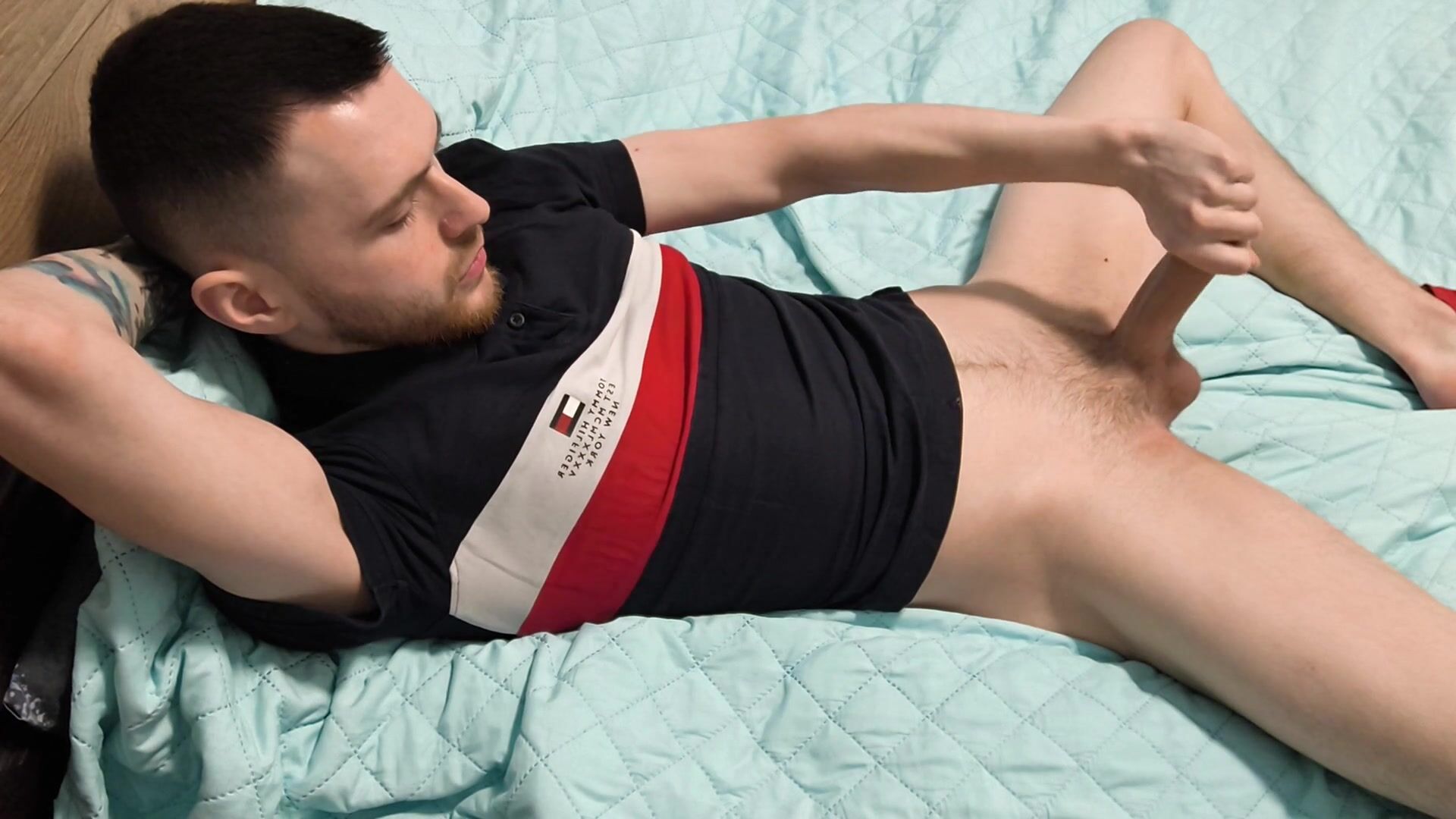 Glorious man tugging off and spunk