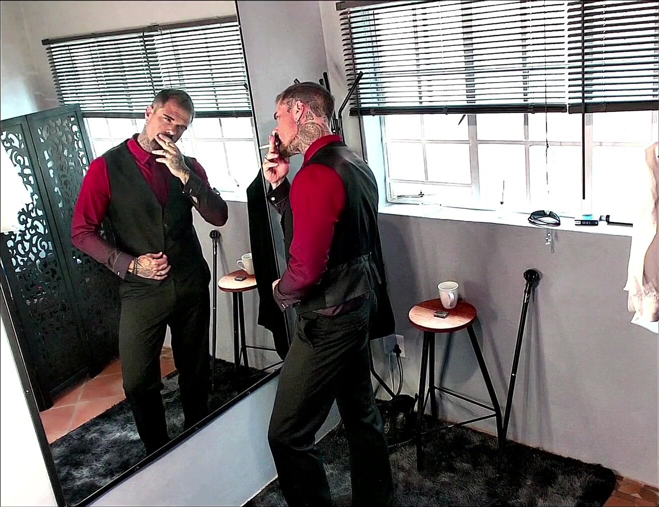 Suit unwrap while I smoke and masturbate off.