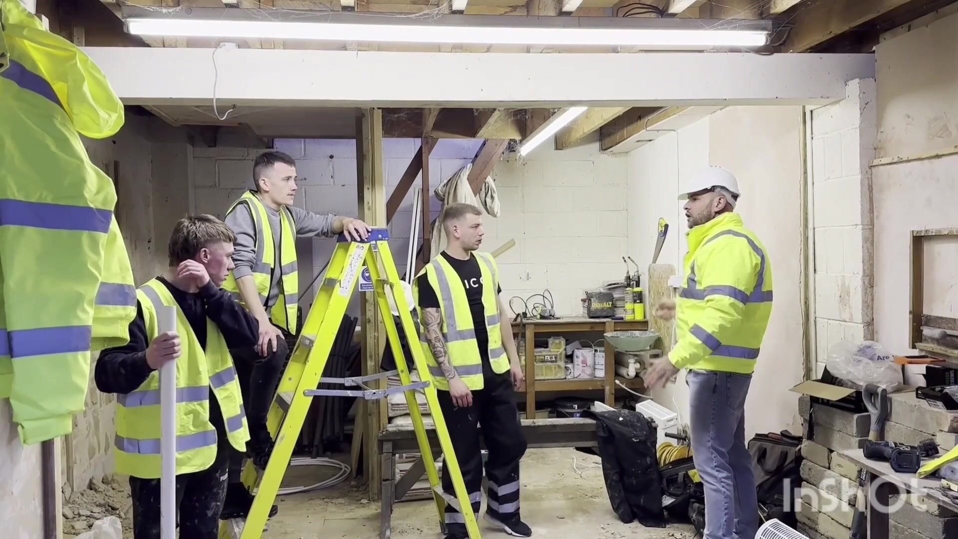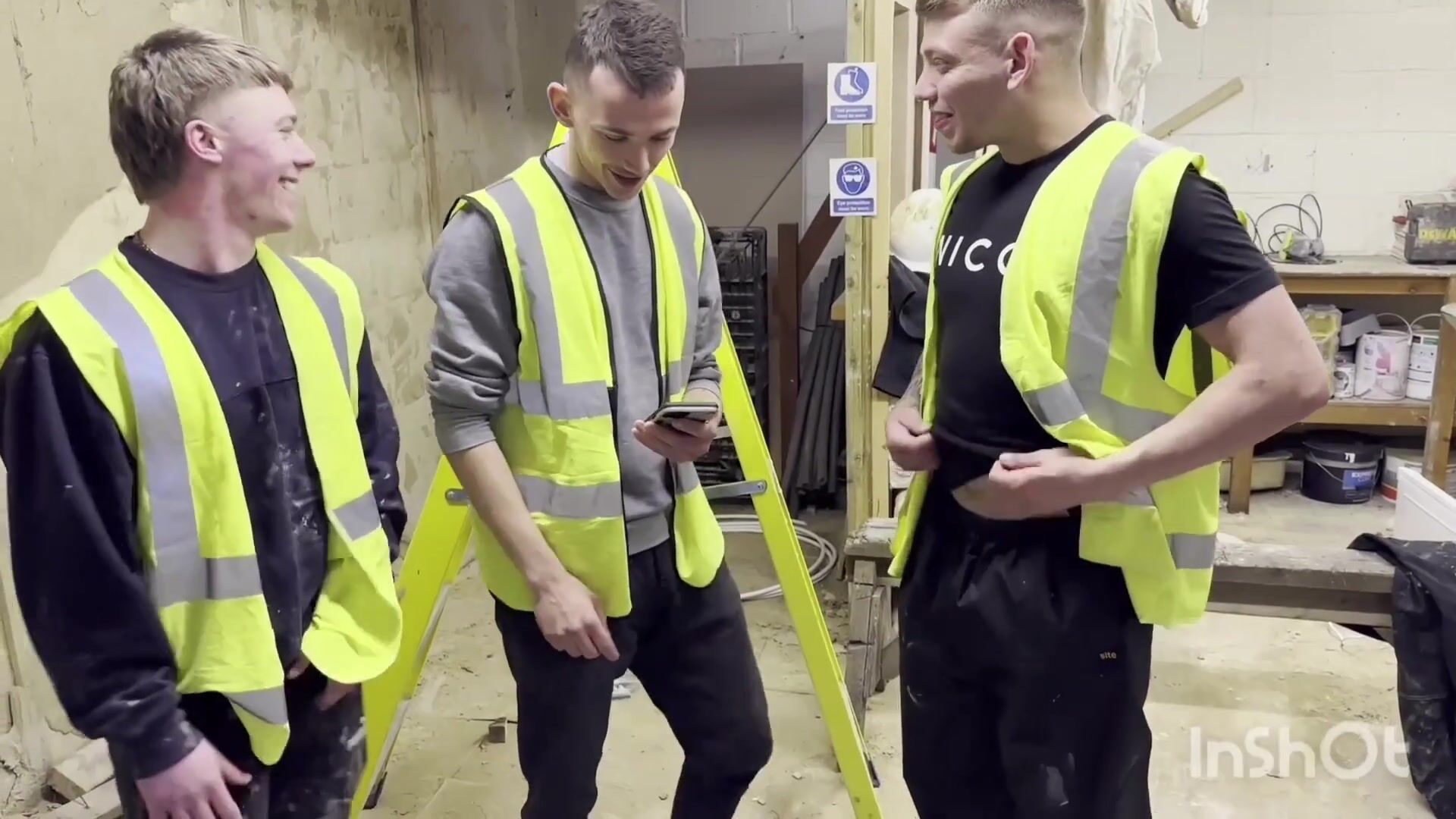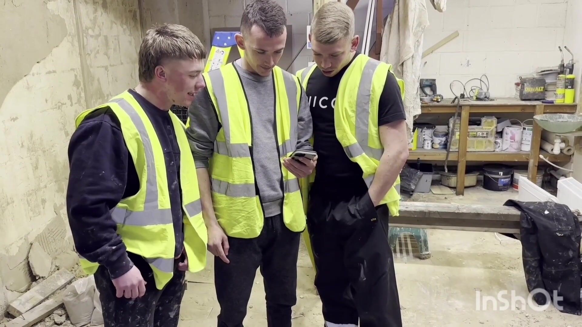 three Super-naughty Labourers Jerk Off on the Job