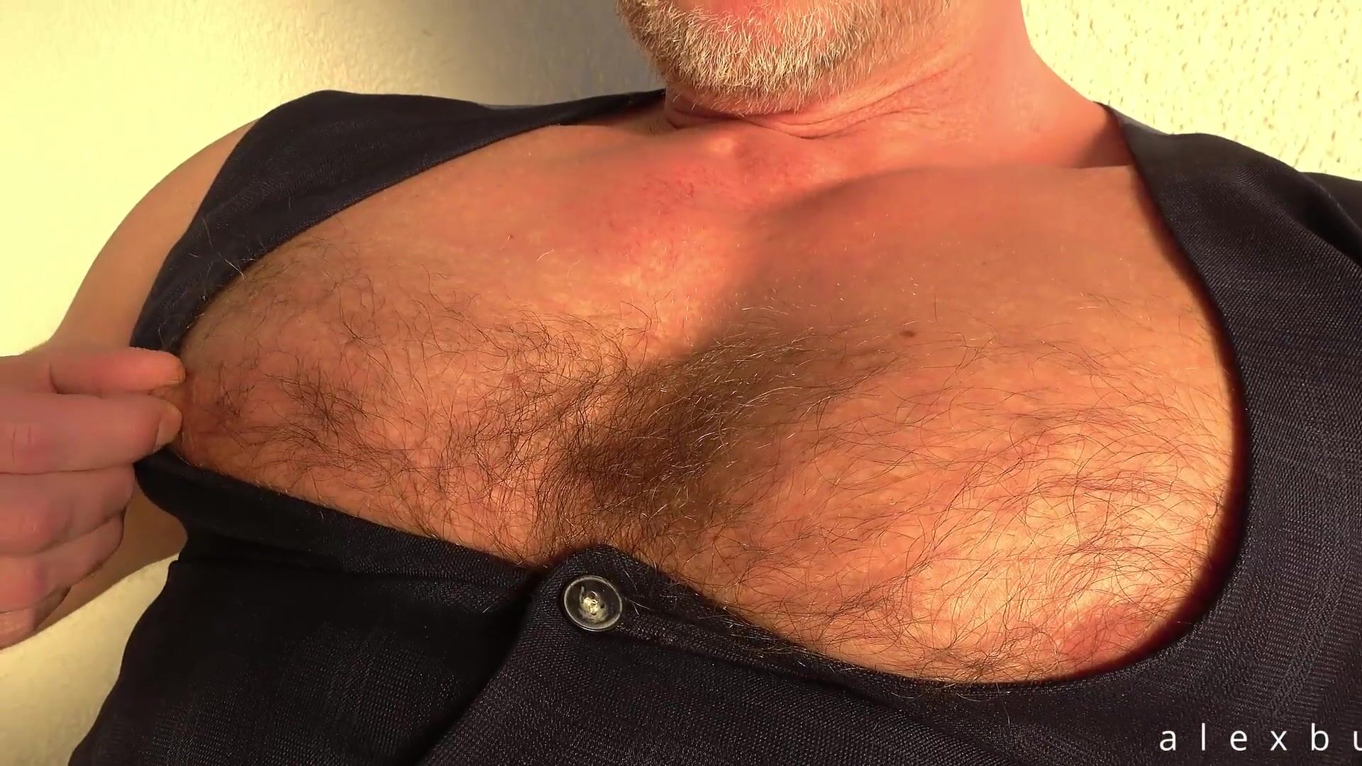 fur covered bulky muscle bull frolicking with his muscle mounds and puffies while showcasing his large pink cigar
