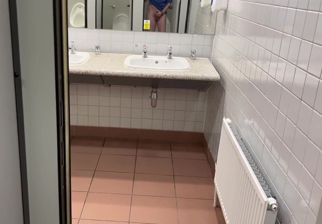 Jerking with the door open in public shower