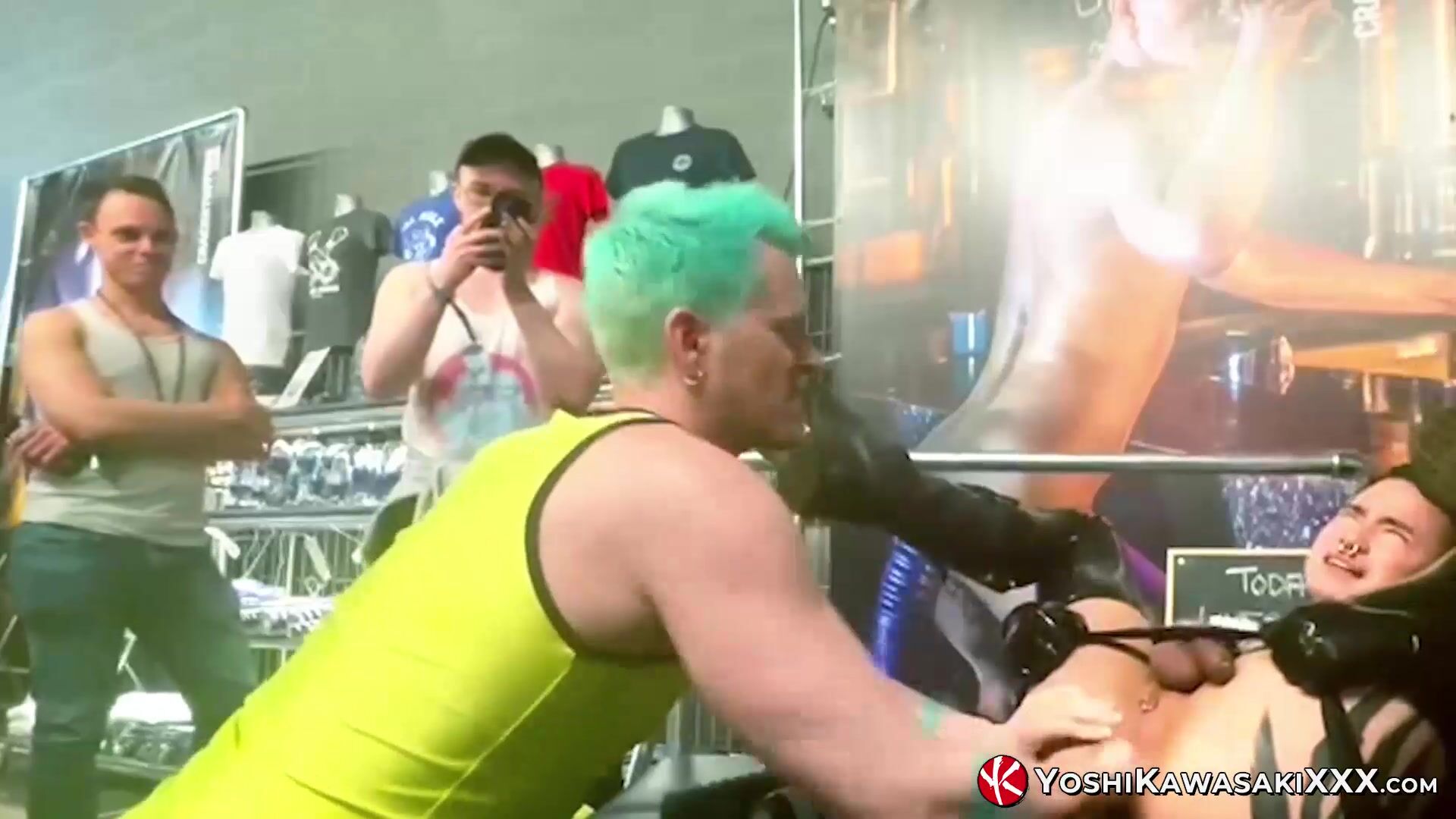 Being watched, filmed and surrounded by hundreds of kinkstars. Yoshi and Axel stuff each others cracks with fists and huge toys.