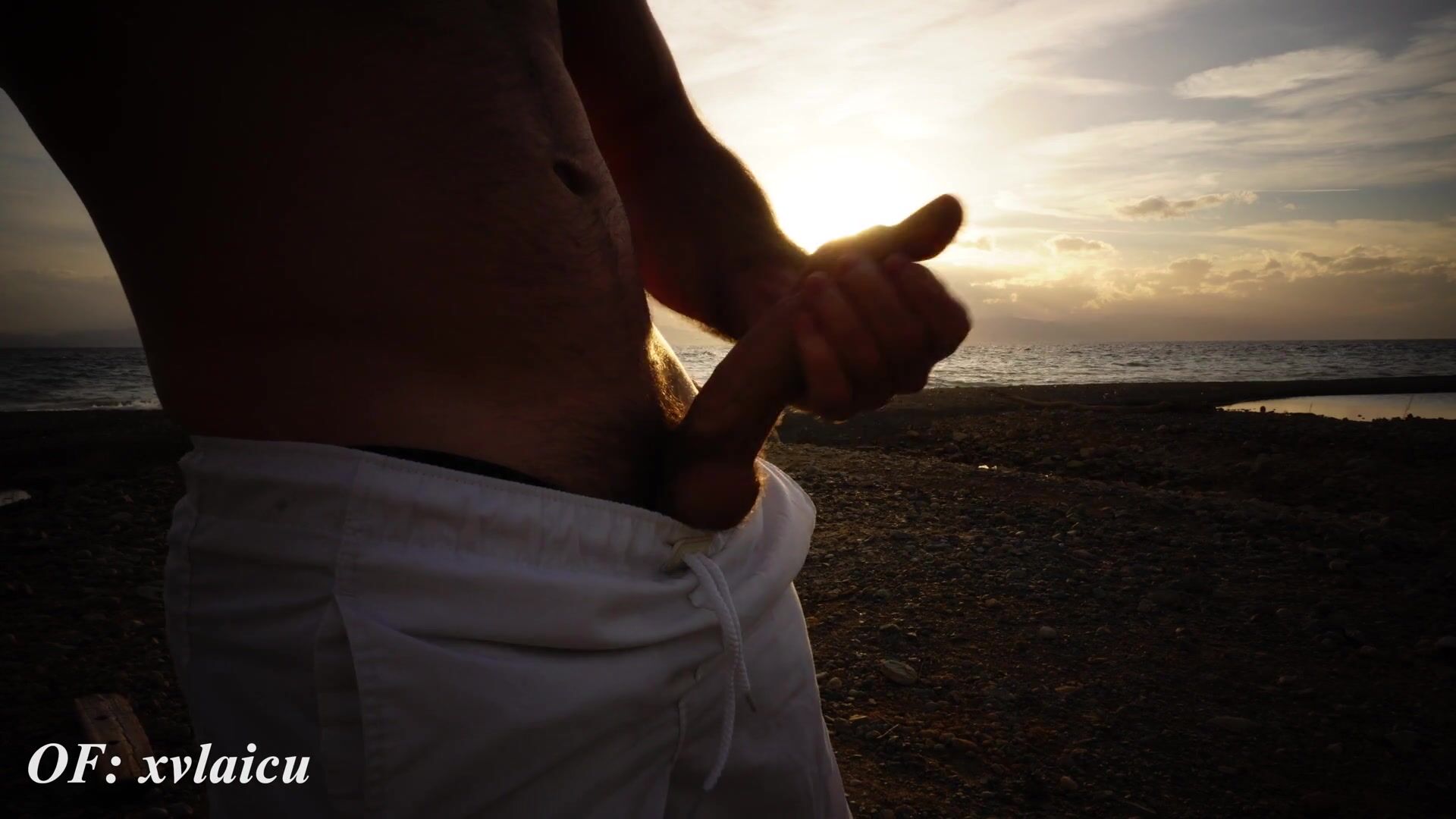 Beach Jizz Nearly Caught by Locals Huge Uncircumcised Solo Homosexual Risk
