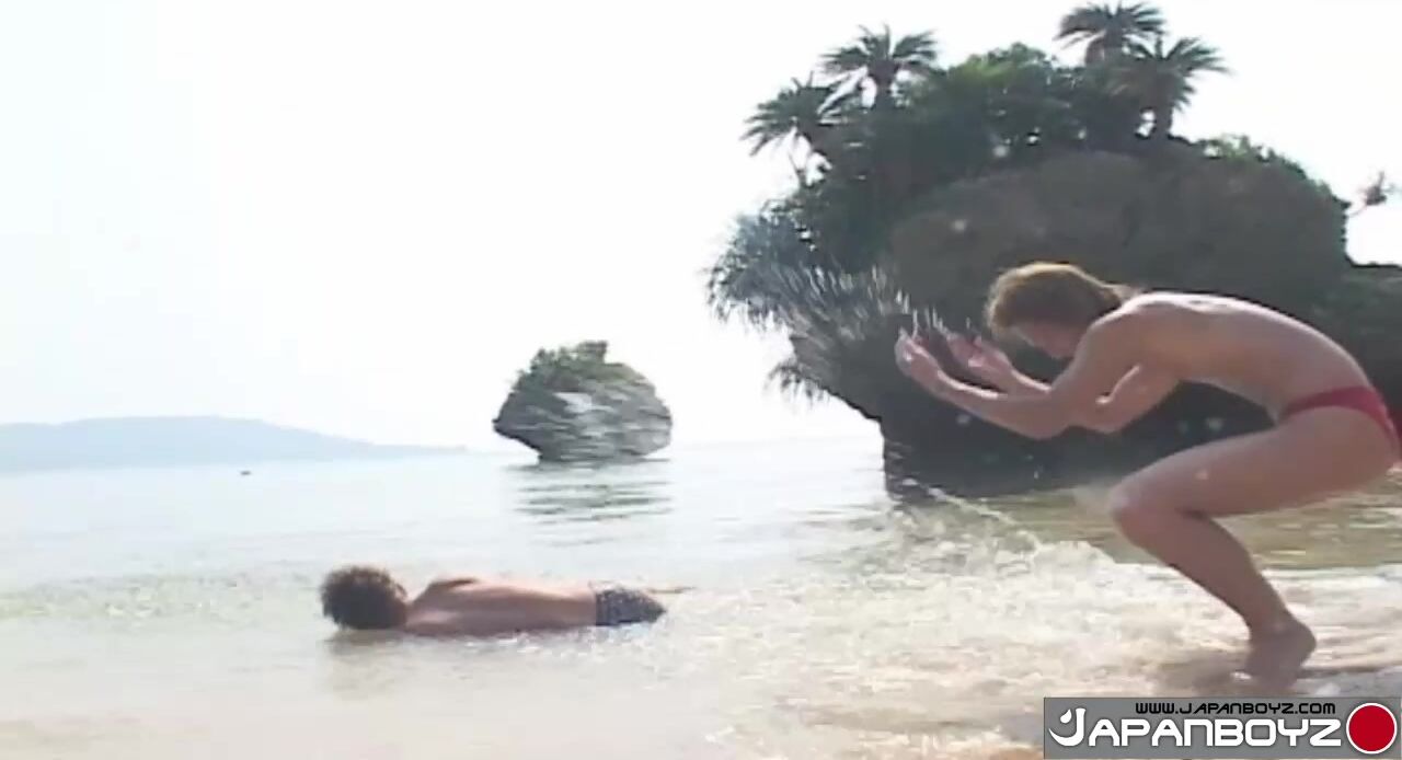 Gota and Toshiyu Nomura start by playing a little sumo wrestling on the sand. I wonder what they bet? Gota and Toshiyu stroke each otherâs dick and they tug.