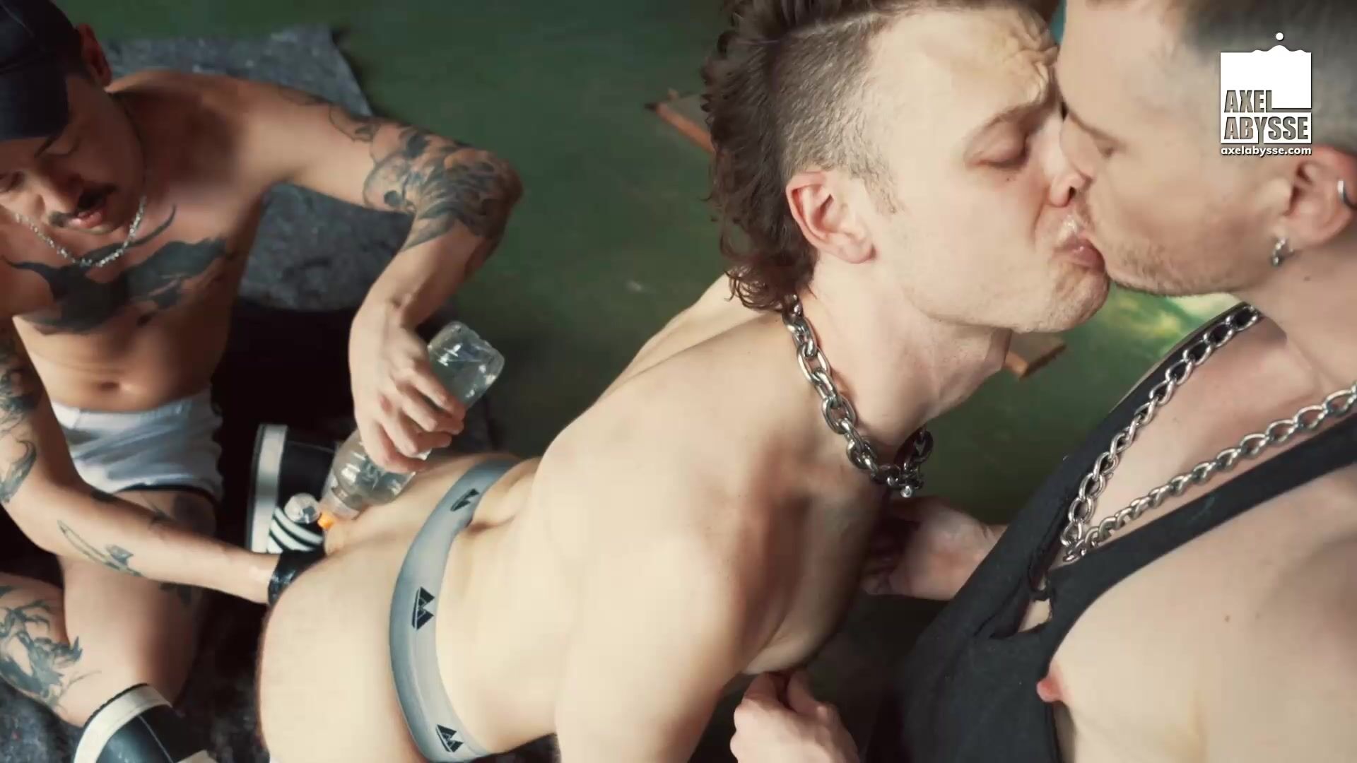 Axel and Rocky ride both Lucioâs arms while making out before sharing his golden shower. They canât be stopped until completely wrecked.