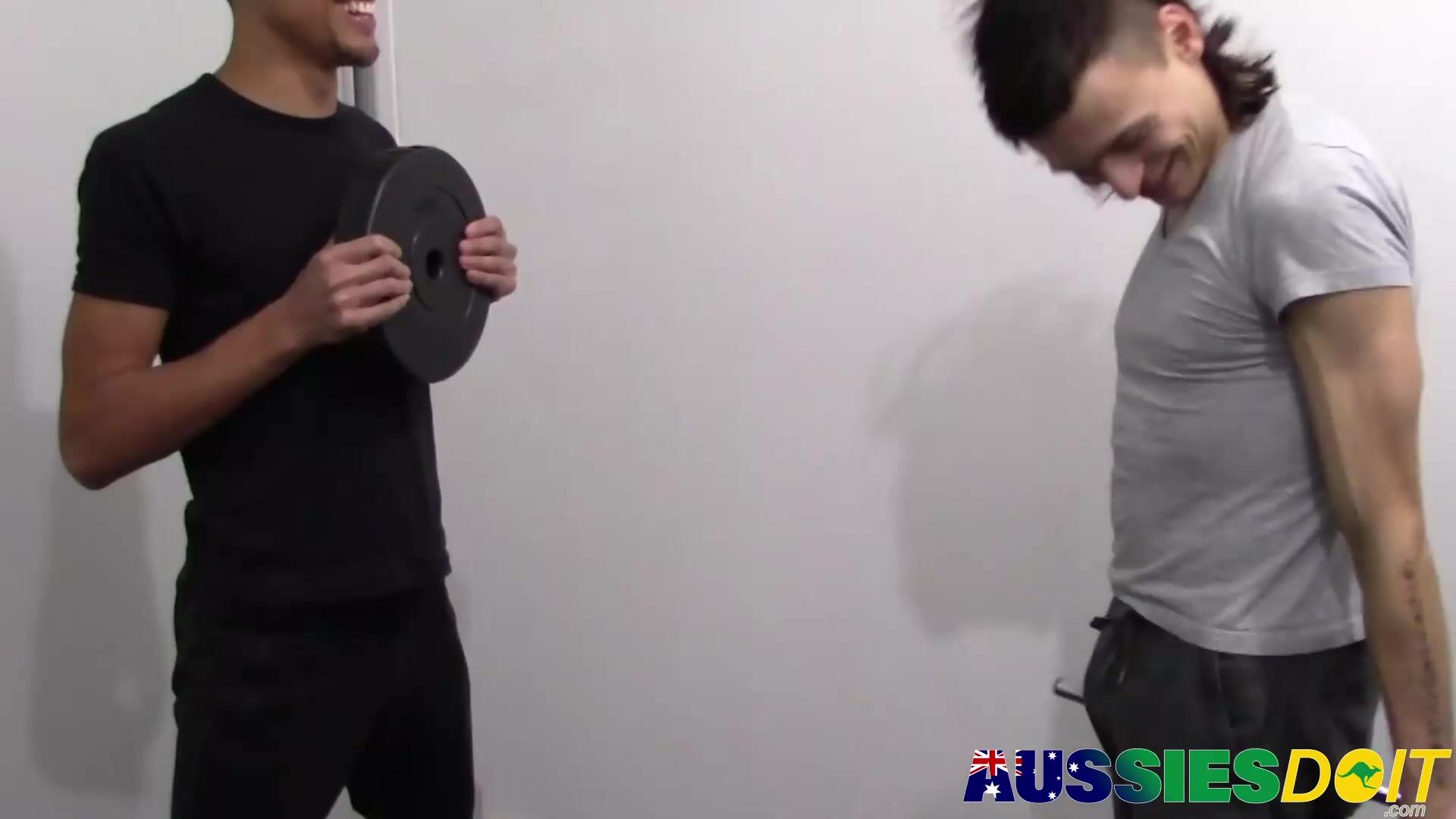 Jamie and Kaleb sit on the ground, with Jamie pointing his cock at Kalebs hole, and Kaleb bouncing on the monster meat.