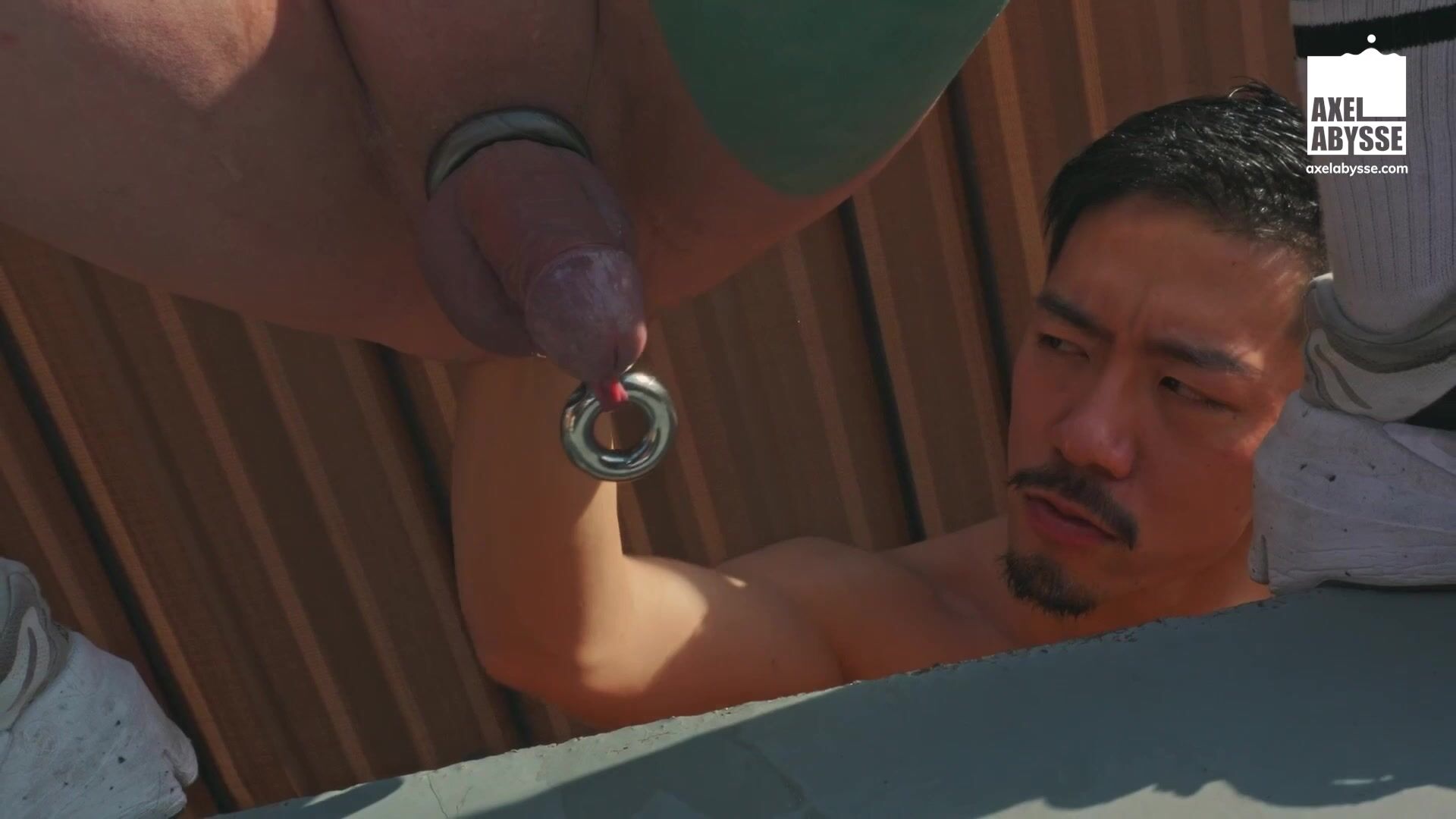 He shoves his arm deep inside, making Axel squirt all over their bodies, mixing it with their own spit.
