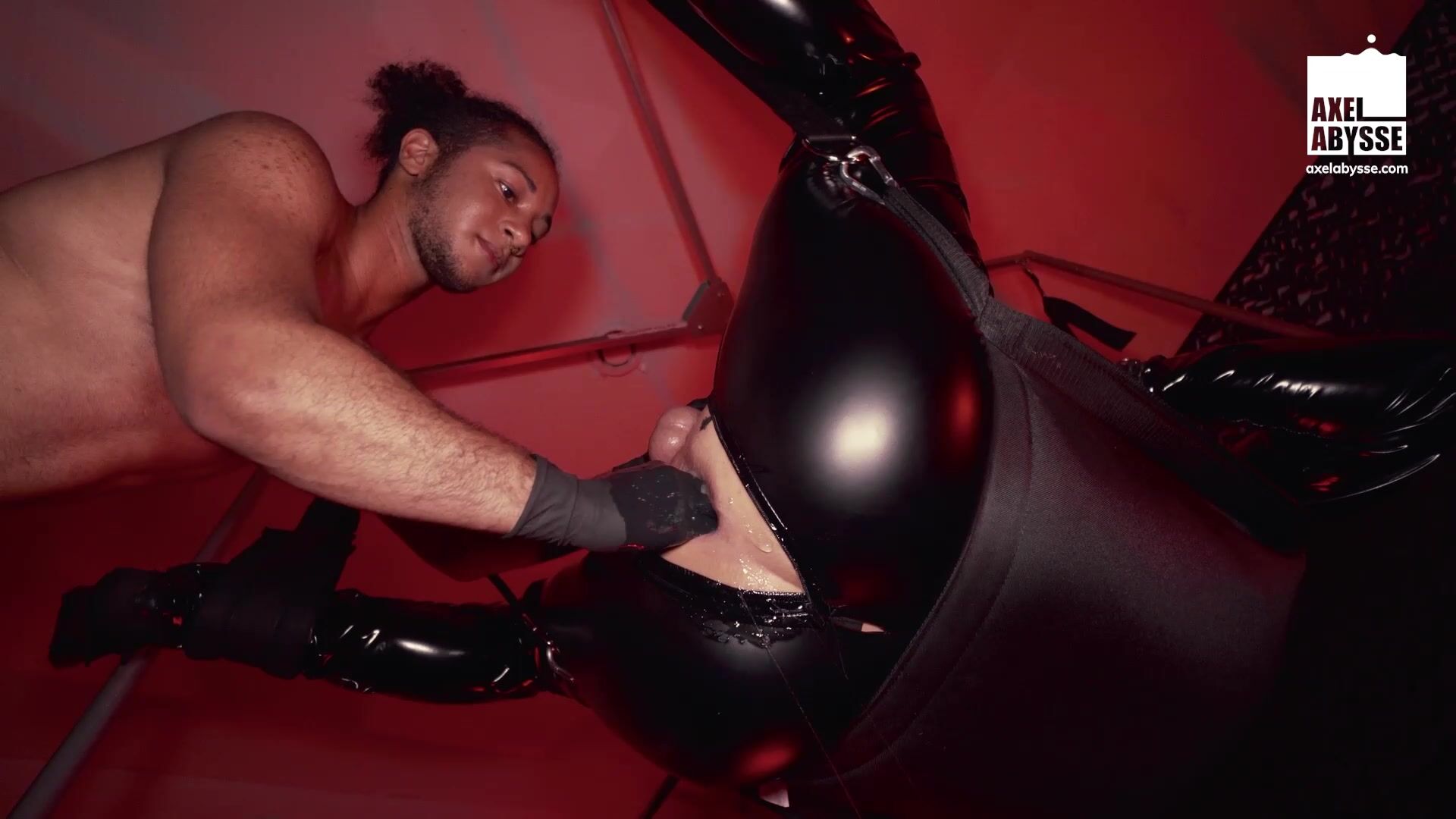 This gimp has the biggest hole in Paris. He spreads his legs in the sling for his master Glitx, ready to take an elbow deep dive.
