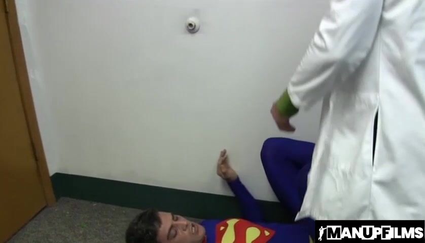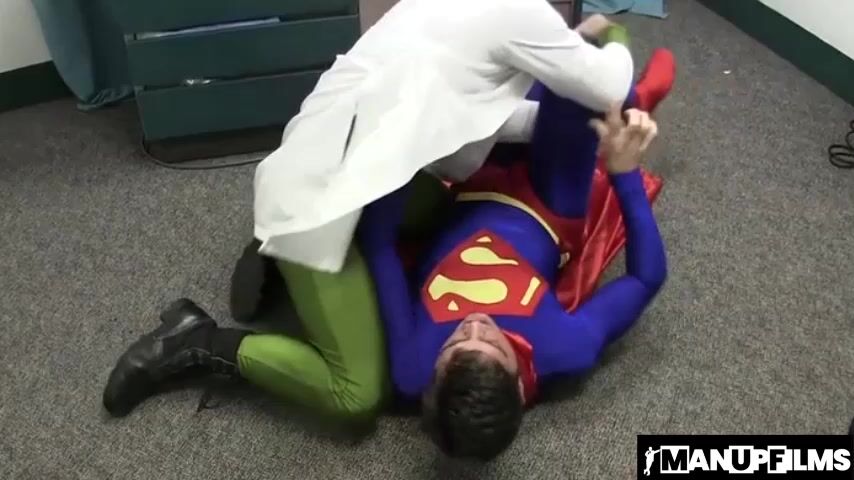 The two struggle and grapple, but in the end the evil doctor gets the upper hand by continuously giving Superman low blows.