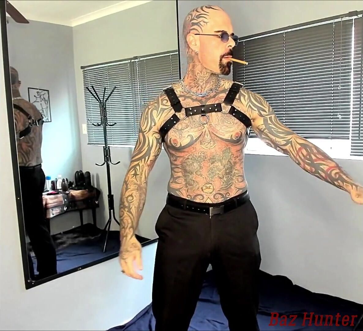 Clean-shaven corset with cigar Wank off.