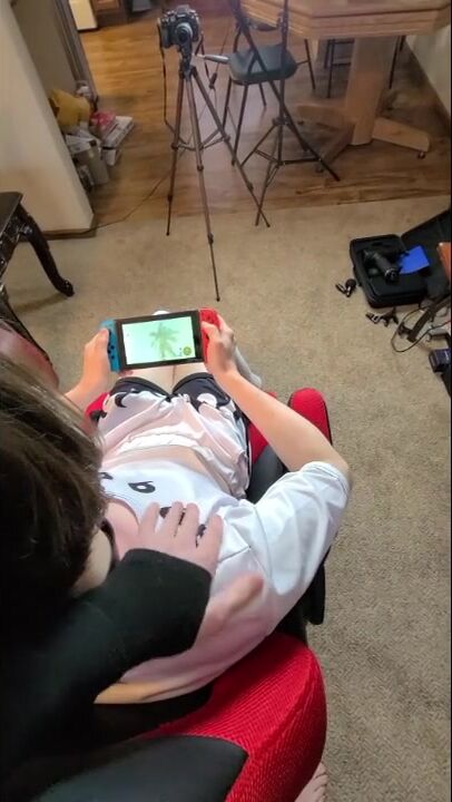 Femboy gets a hand job from his pal while toying Nintendo Change