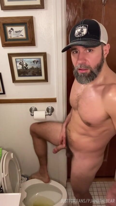 Bearded fellow pees bare