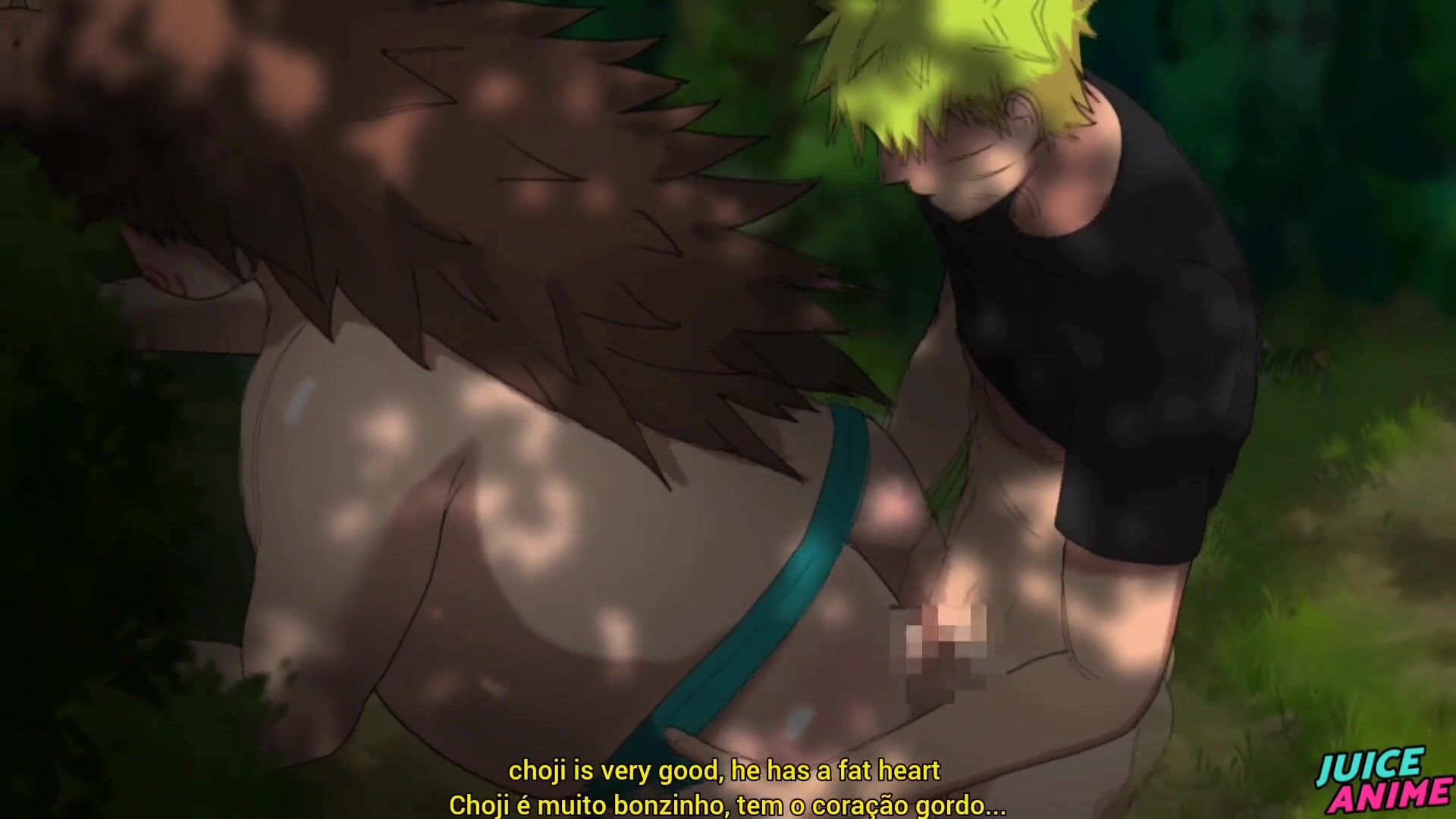 Round Choji Lets His Hetero Homies Naruto and Kiba Poke His Ample Bootie - Queer Bara Yaoi