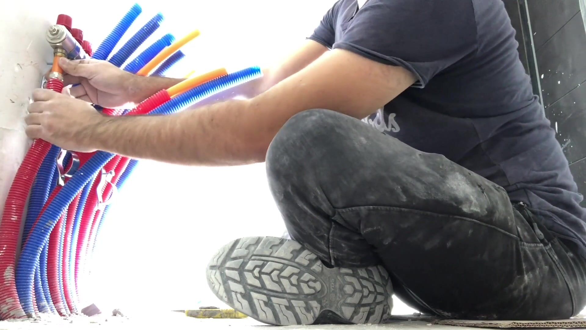 Deviant plumber gets wild while hes working on radiator fucking in construction