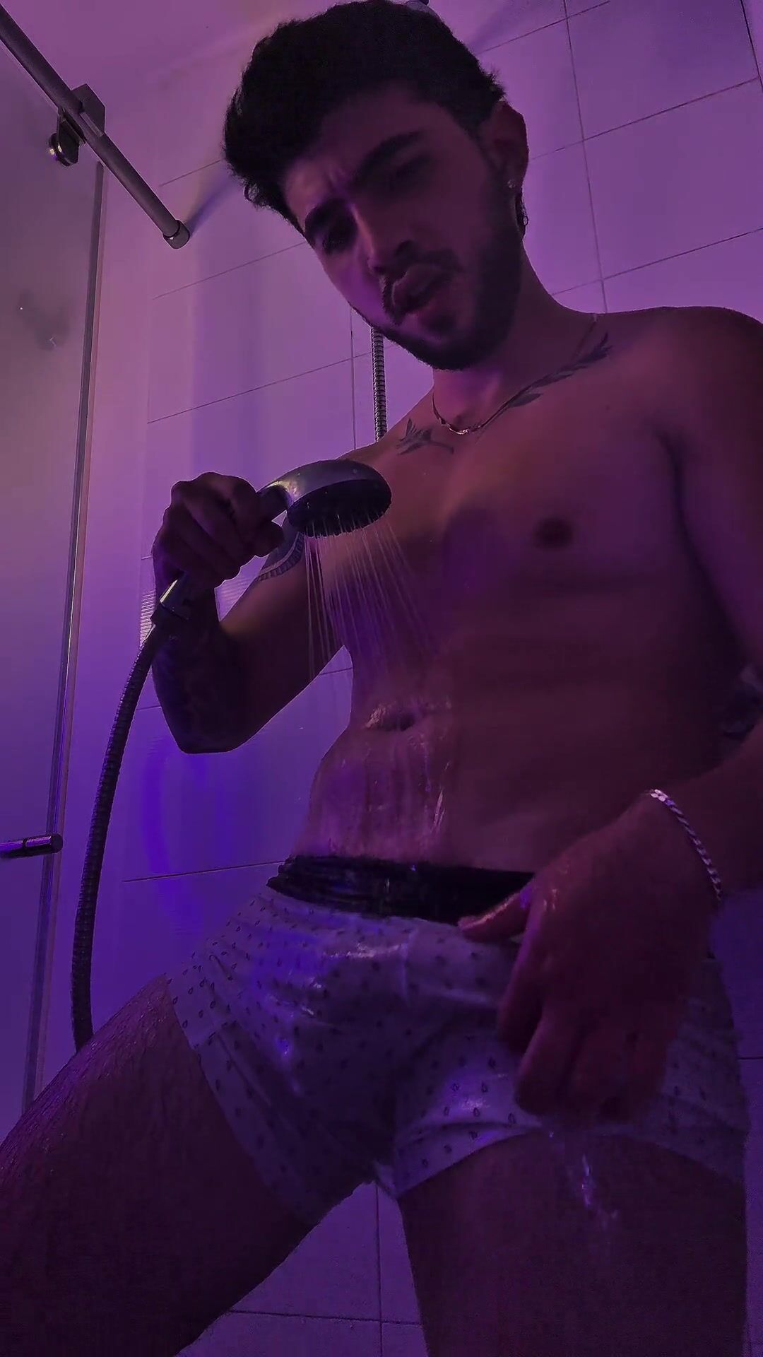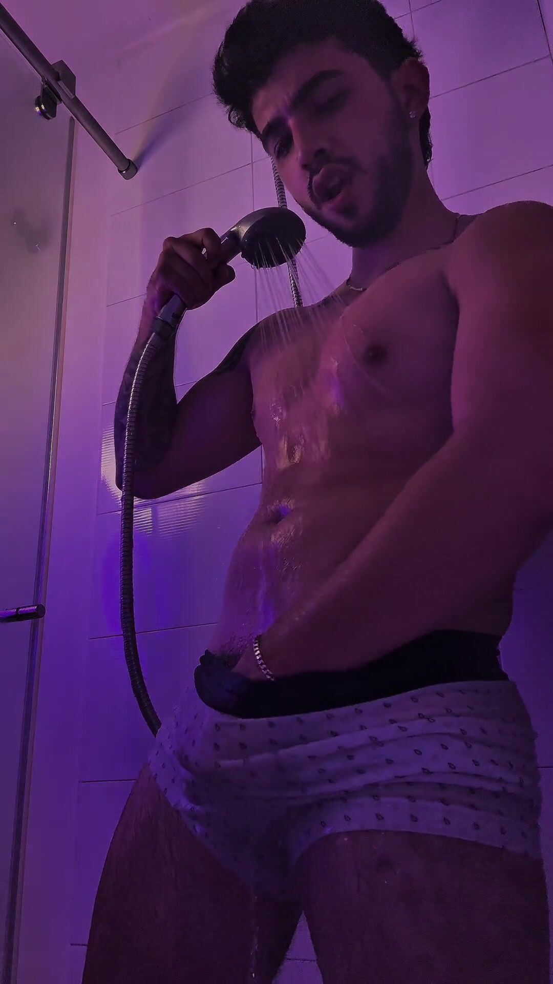 se calento en la ducha y termino masturbandose hasta sacar toda su leche
