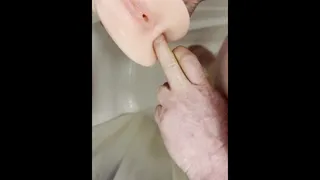 Plumbing pocket coochie in the douche money-shot