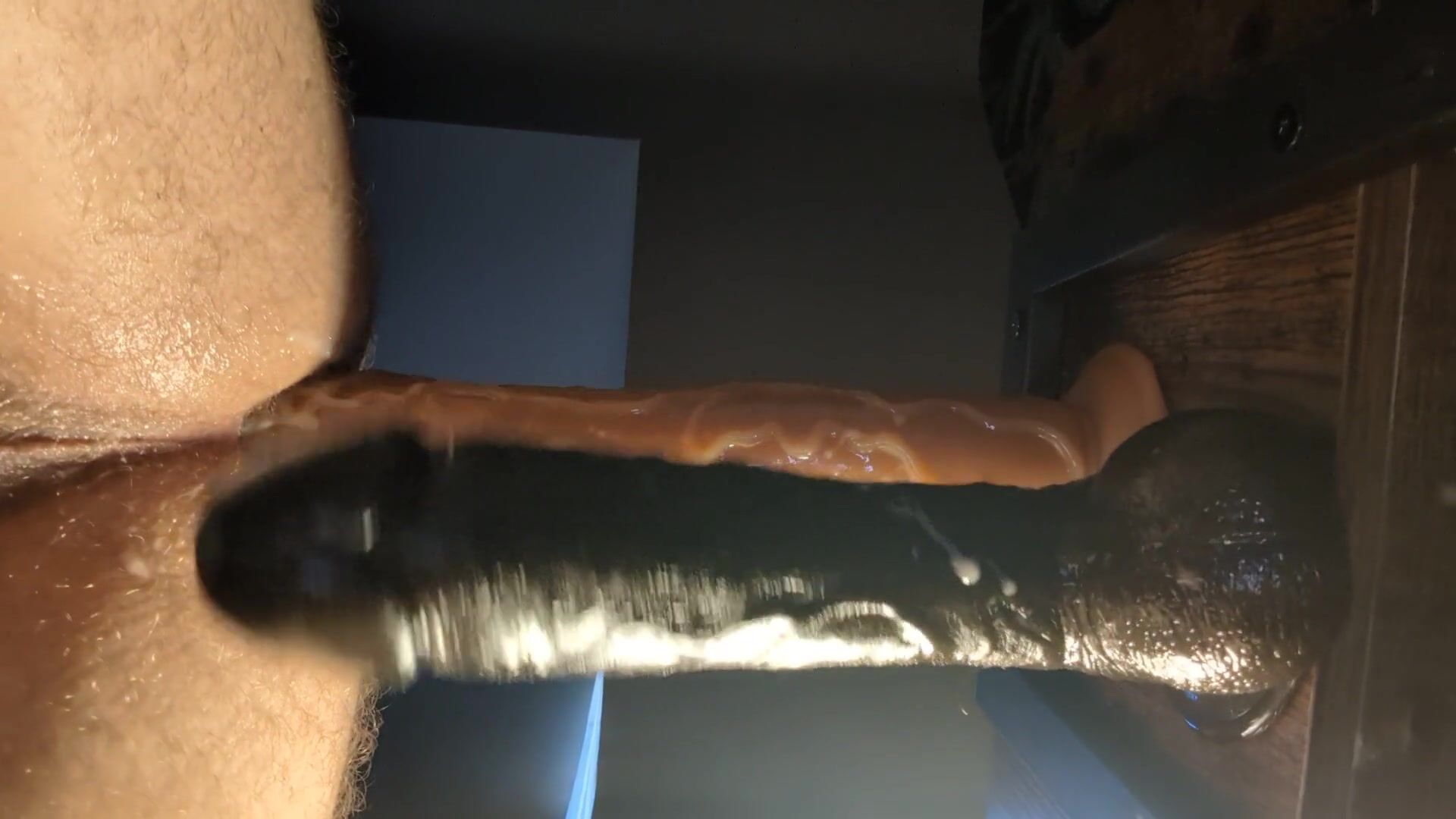 Dual ass fucking romping myself with 13 & ten inch fuck sticks on all 4s