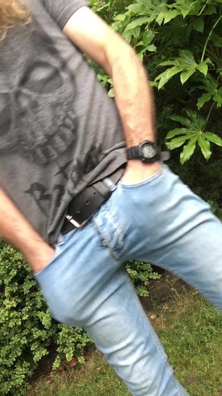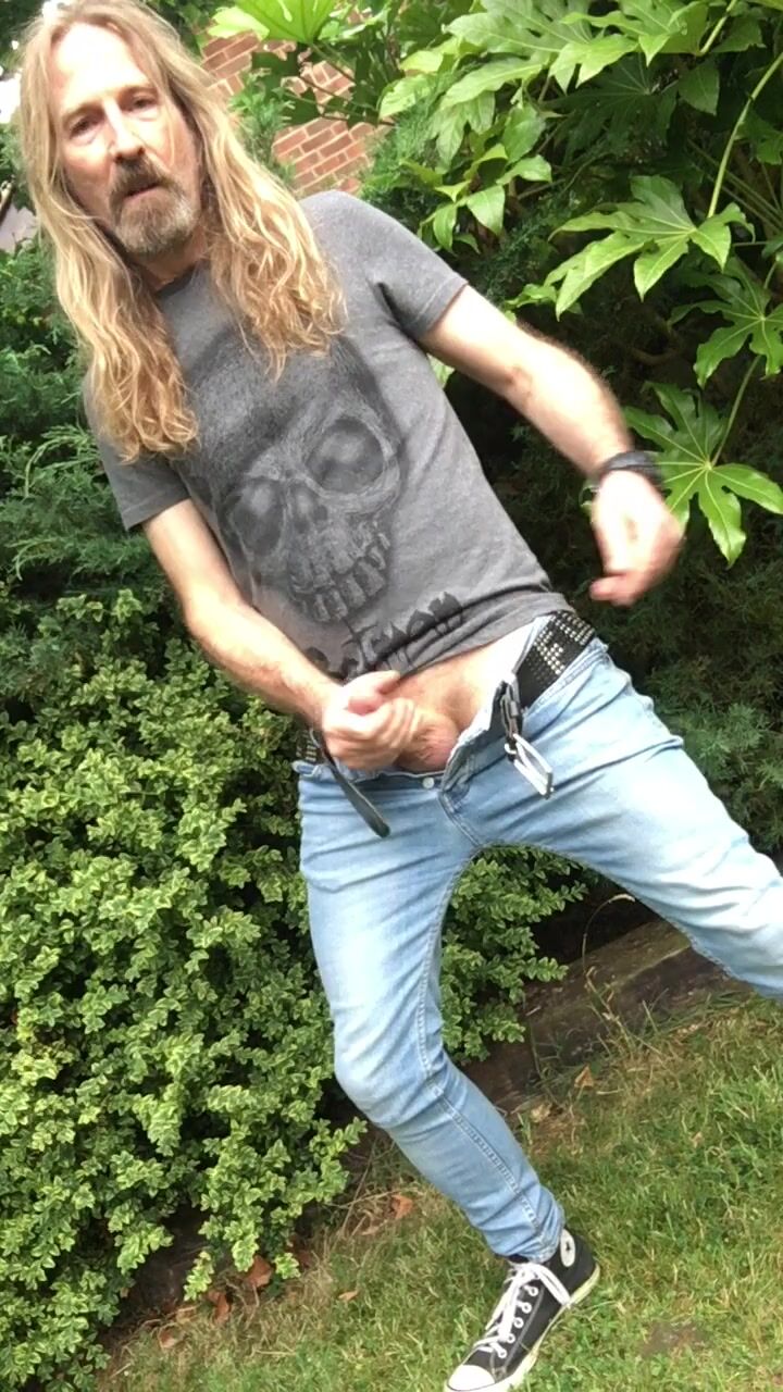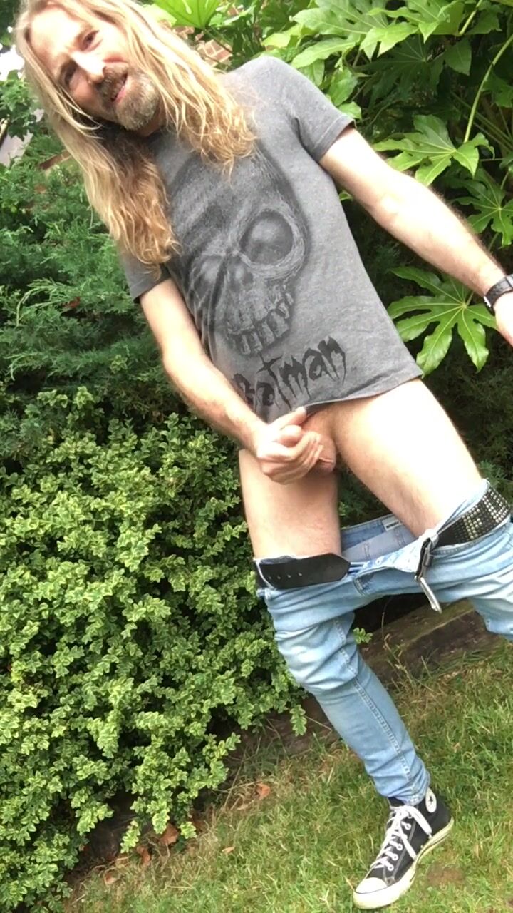 Longhairdude breaks one off in the garden, SprayOn thin denim, Batman tshirt, Chats
