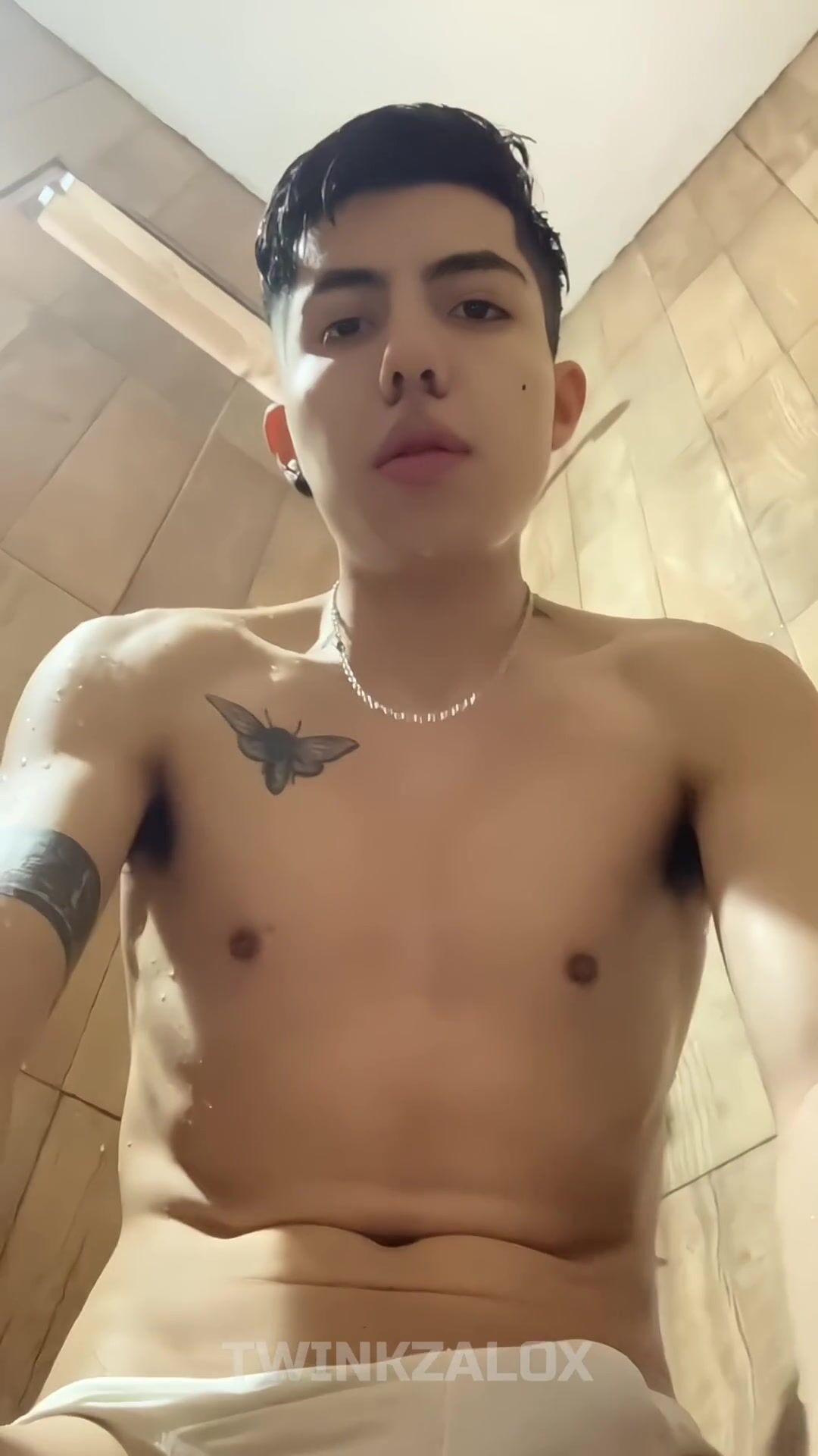 LATINO YOUNGSTER JACKS OFF IN THE DOUCHE