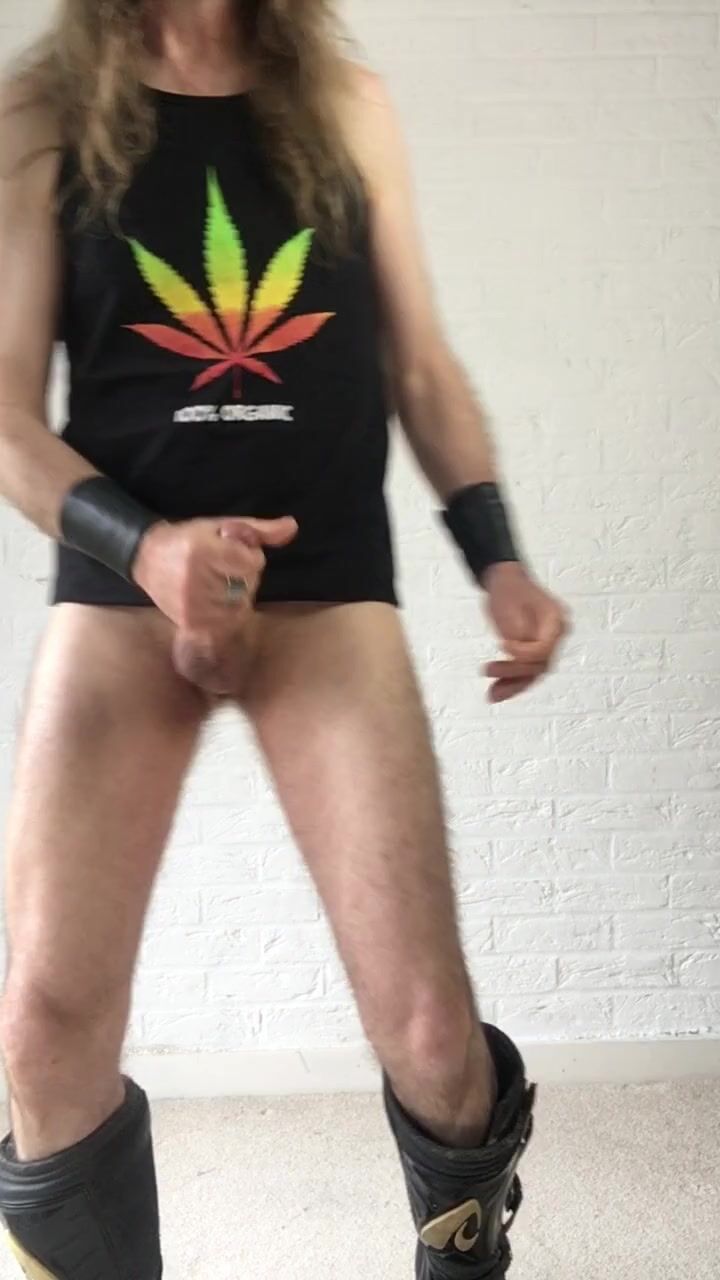 Longhairdude shoots XXL fountain in Motocross Shoes, 420 Organic Weed Sleeveless Tshirt, gauntlets