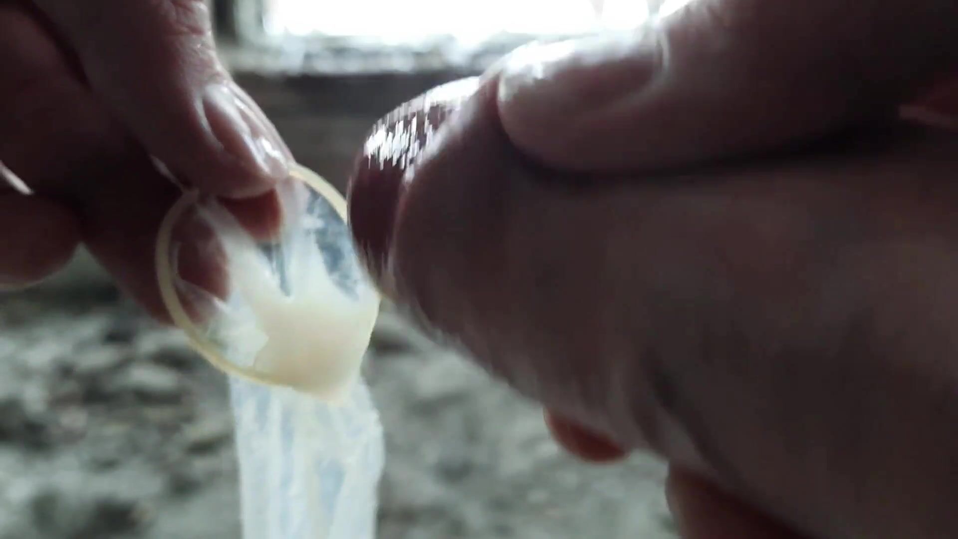 The janitor found a used rubber and added his dosage of man juice