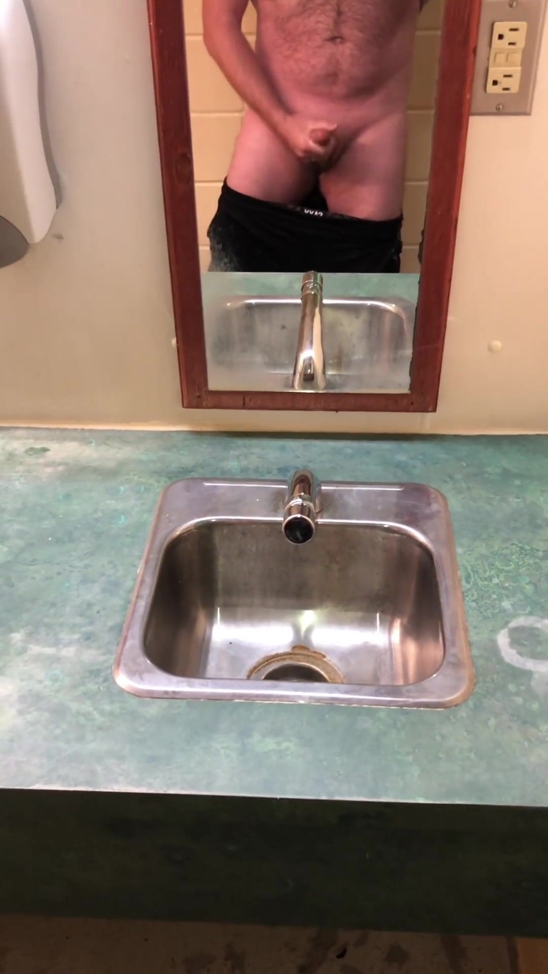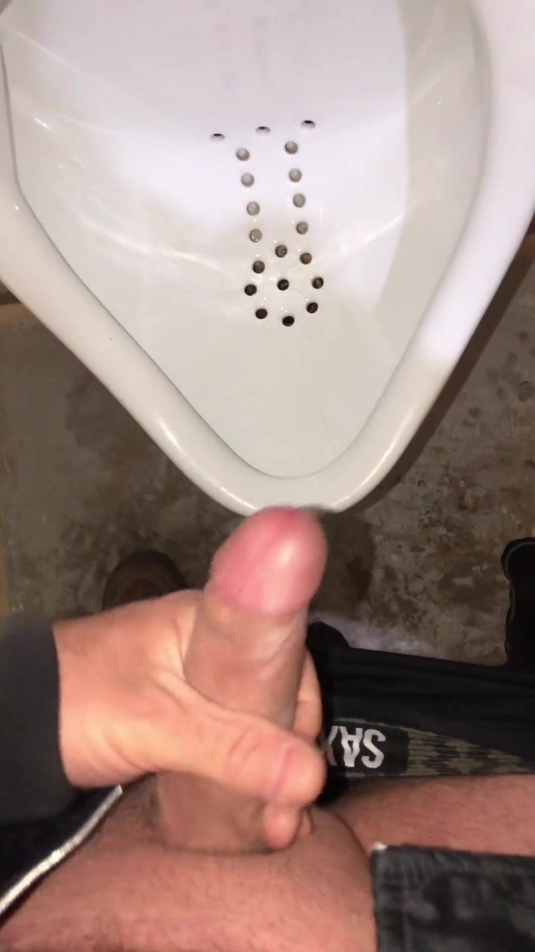 Risky public washroom urinal getting off and money-shot
