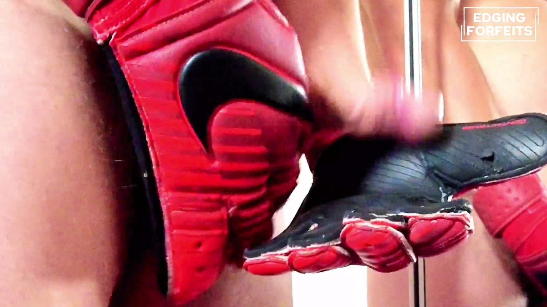 Goalkeeper Mittens & Crimson Football Socks: Edging to Precum with a Rock hard Bowl Jockstrap