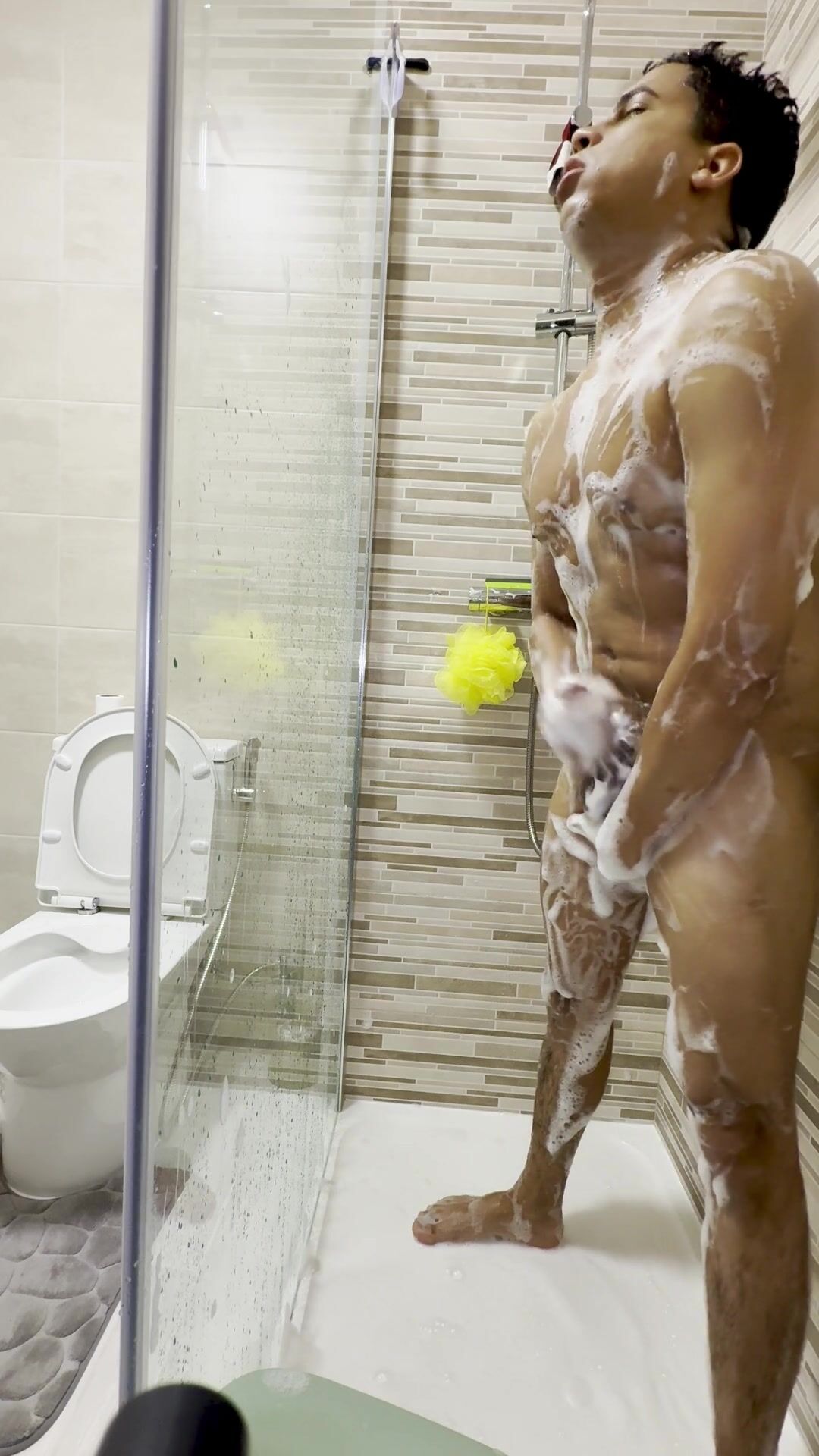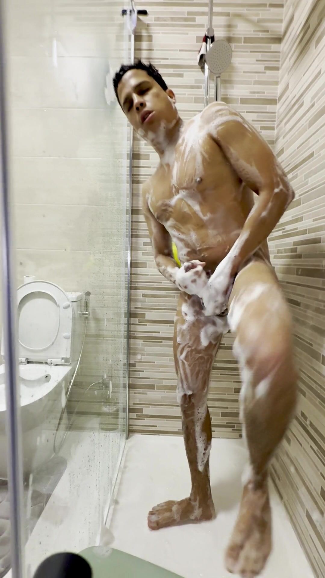 Taking a douche, finger-tickling and gerking me off