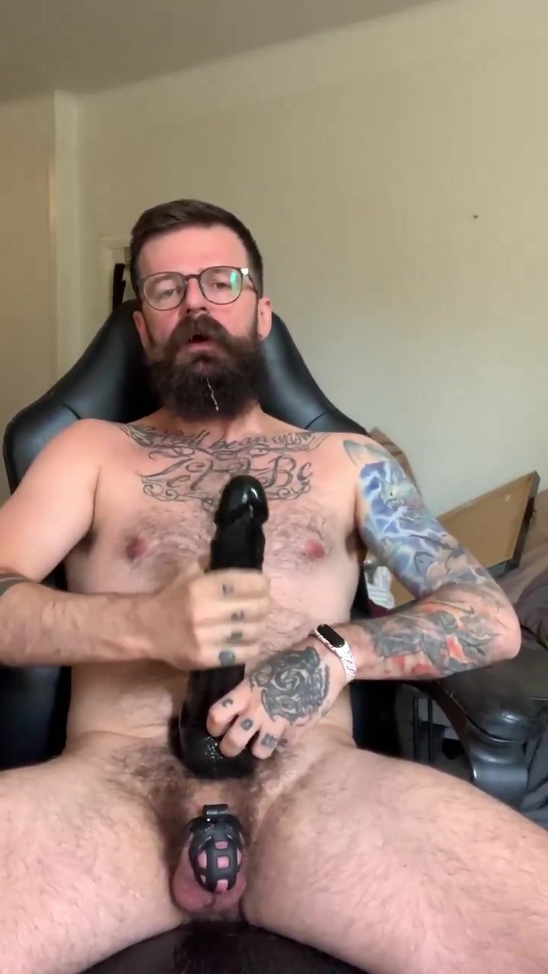 Purity fag stroking off ample fake penis and cuming