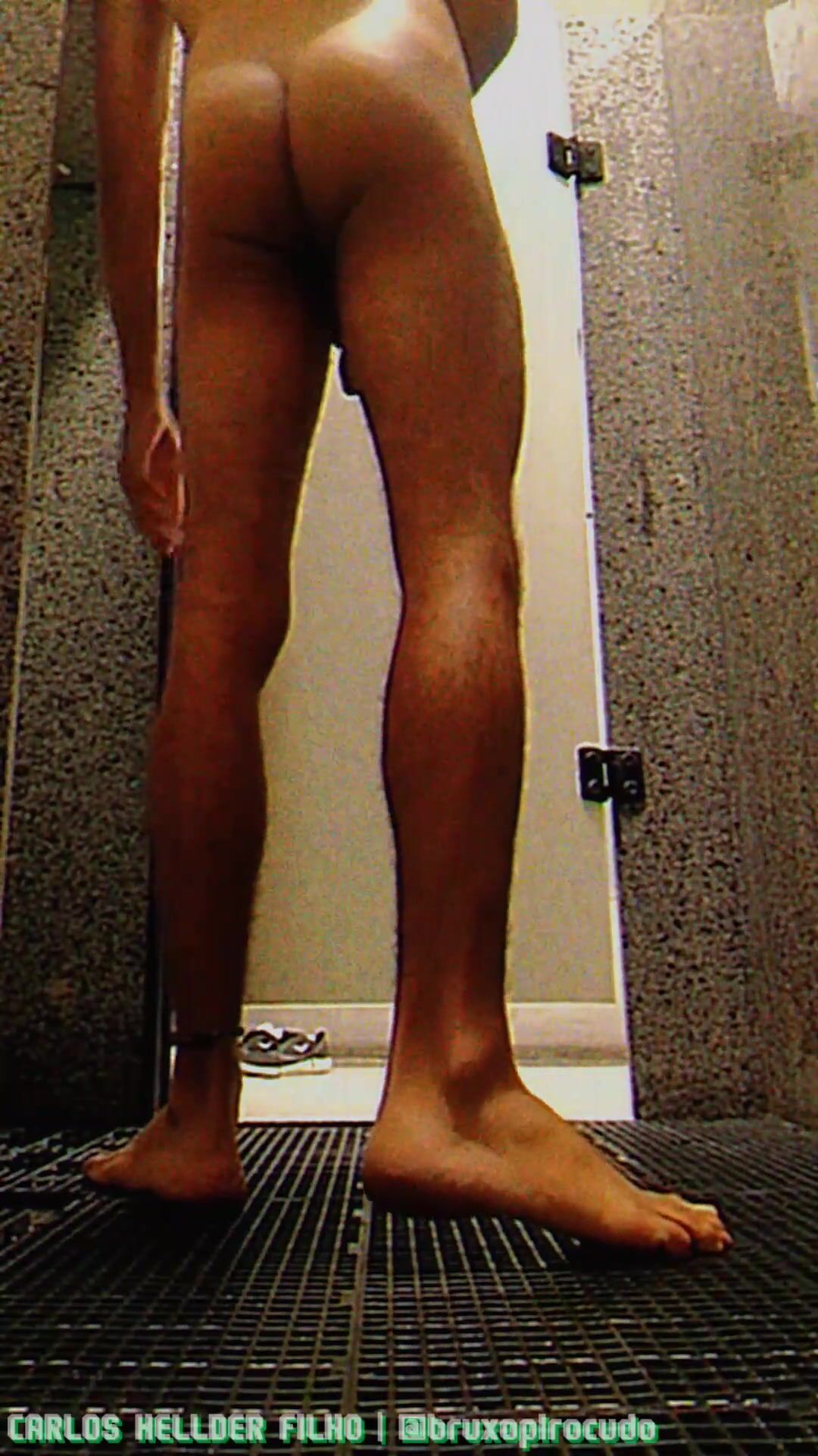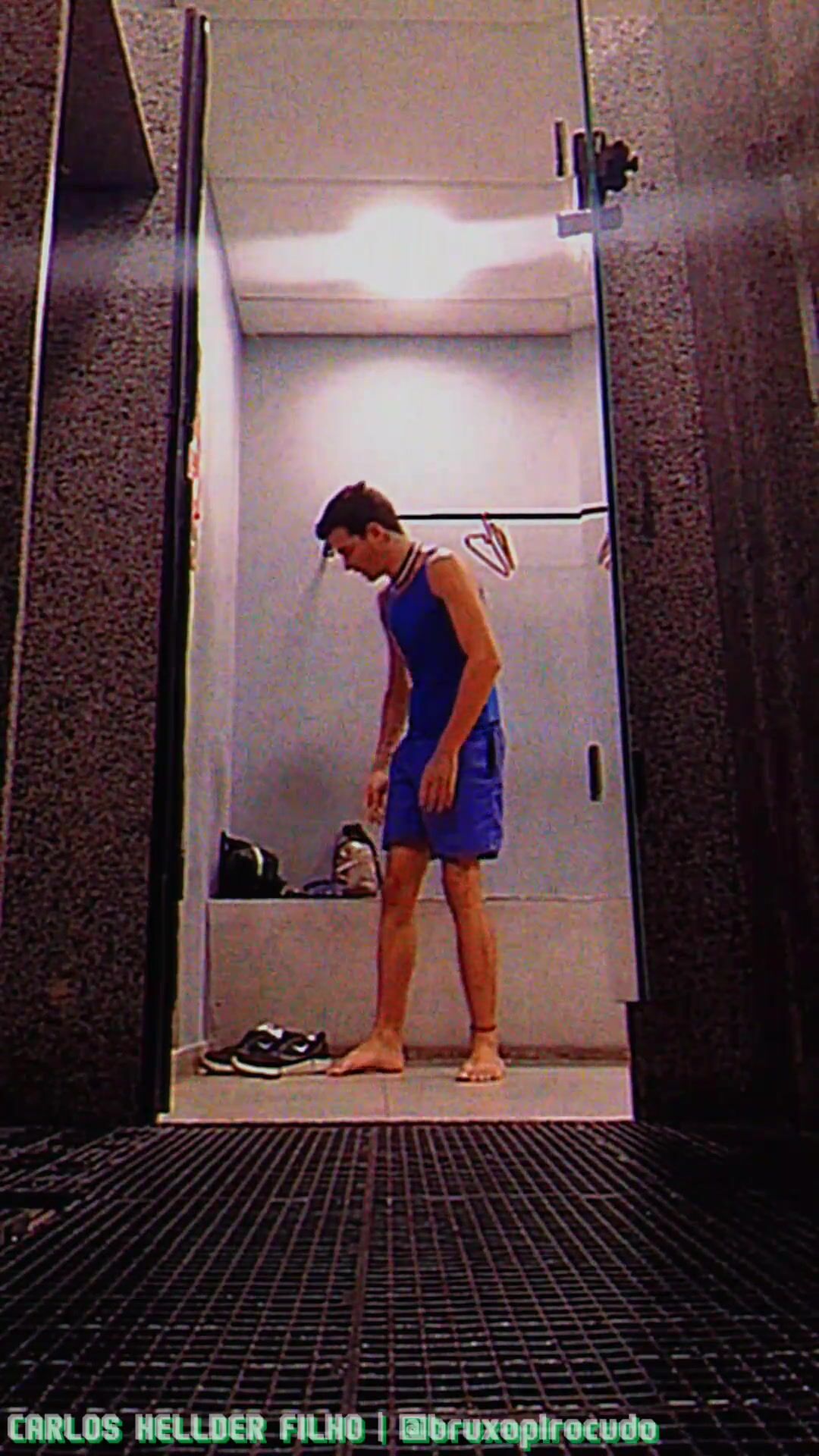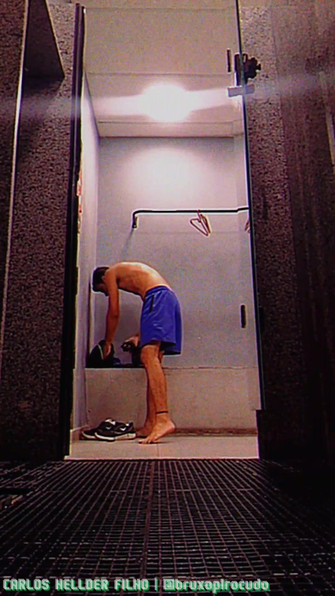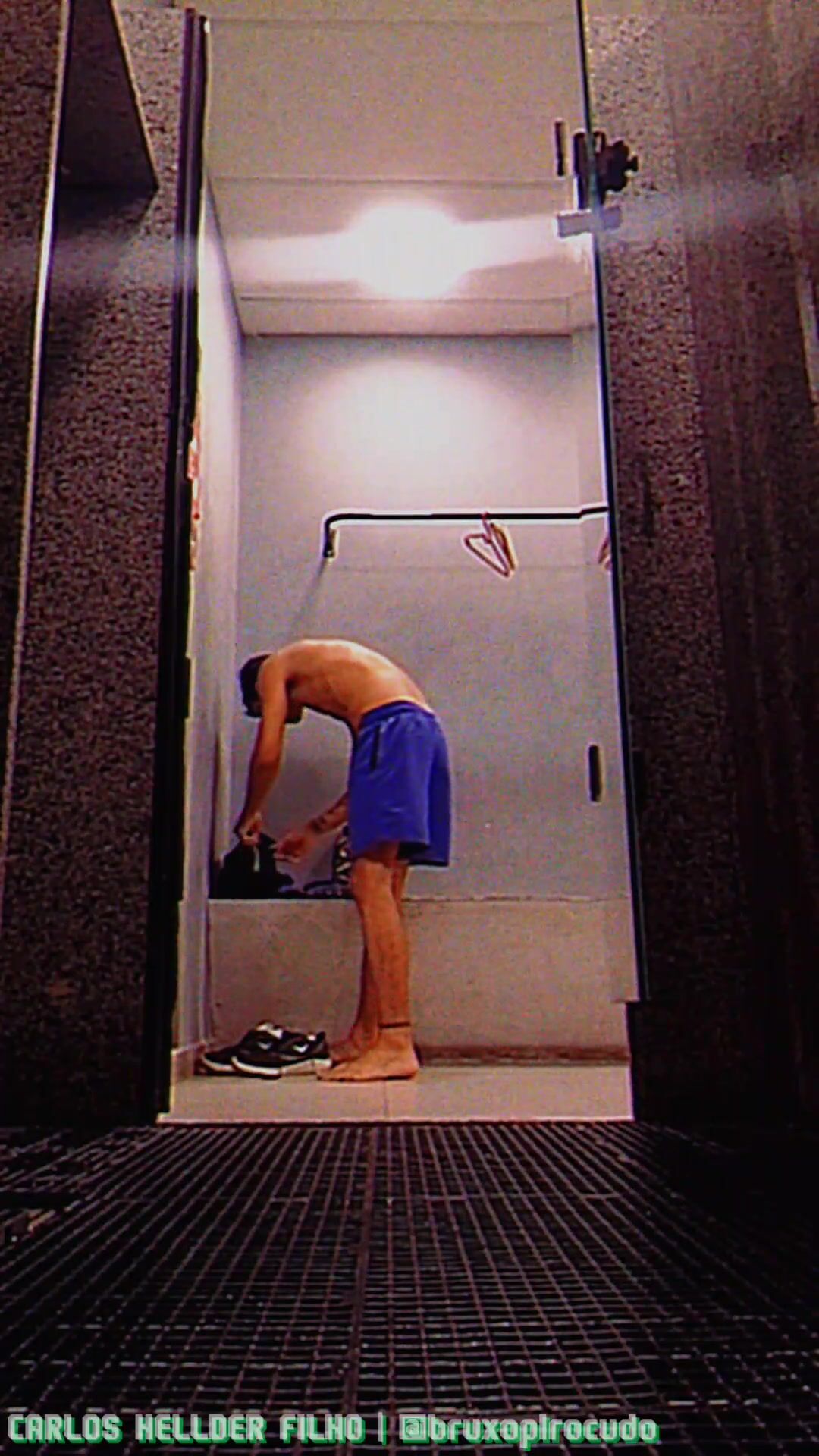 Tirando a roupa para tomar um banho, no vestiário da academia