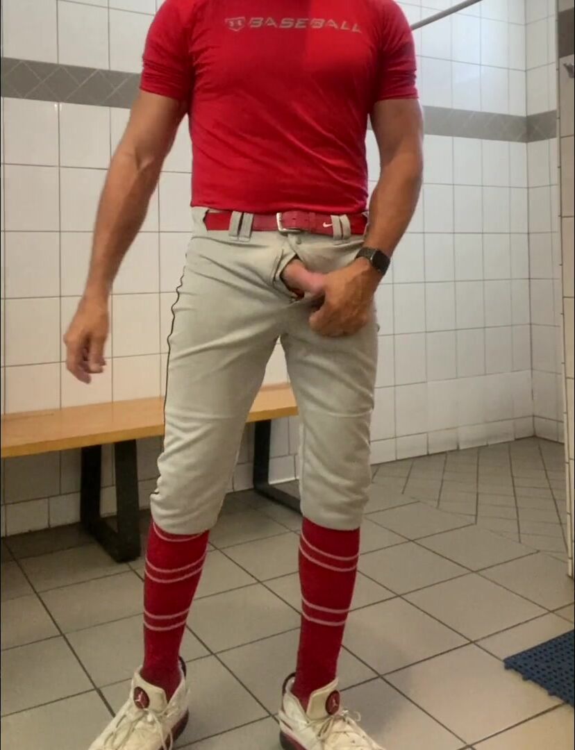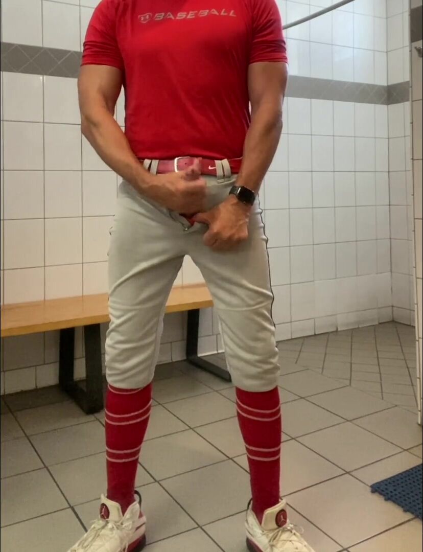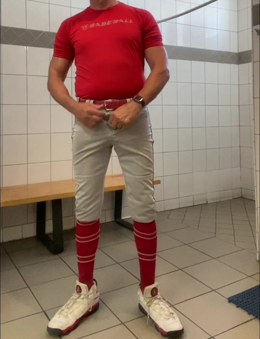 Buff DILFJockDad87 Edges in the Locker Apartment in Baseball Gear