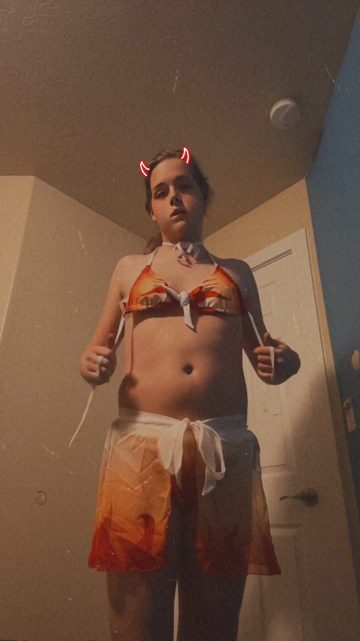 Devil Slayer femboy peels off his bathing suit for you