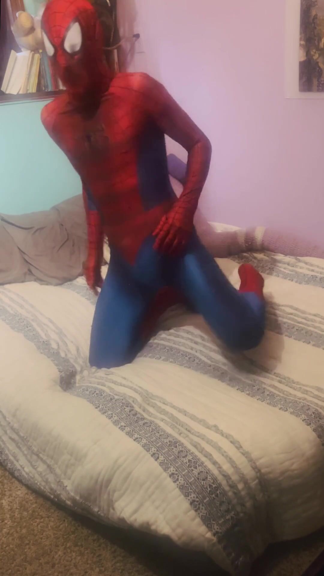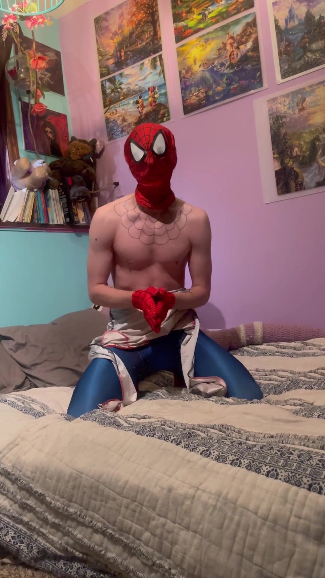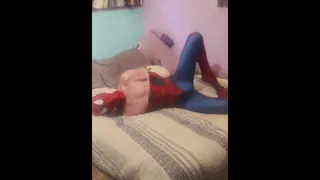 Bicurious Spider-boy Costume play Undressing down and Wank Off