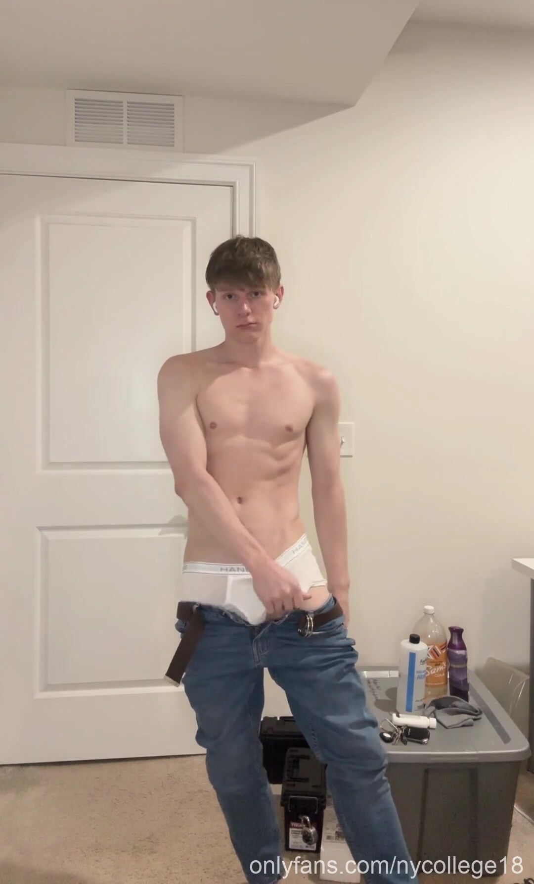 Suspended Platinum-blonde Lad Peels off Down To Tighty Whities And Demonstrates Ample Lollipop