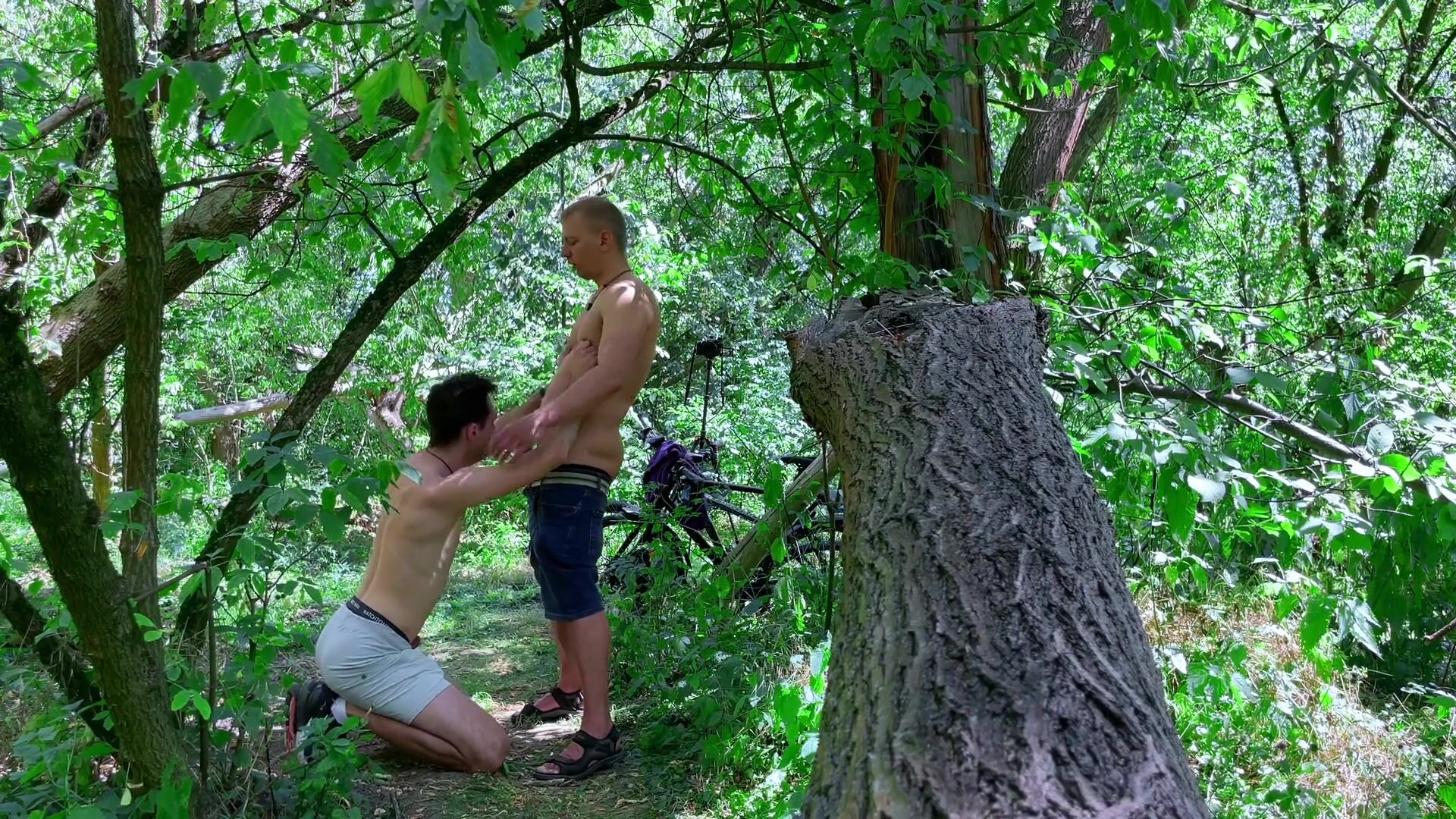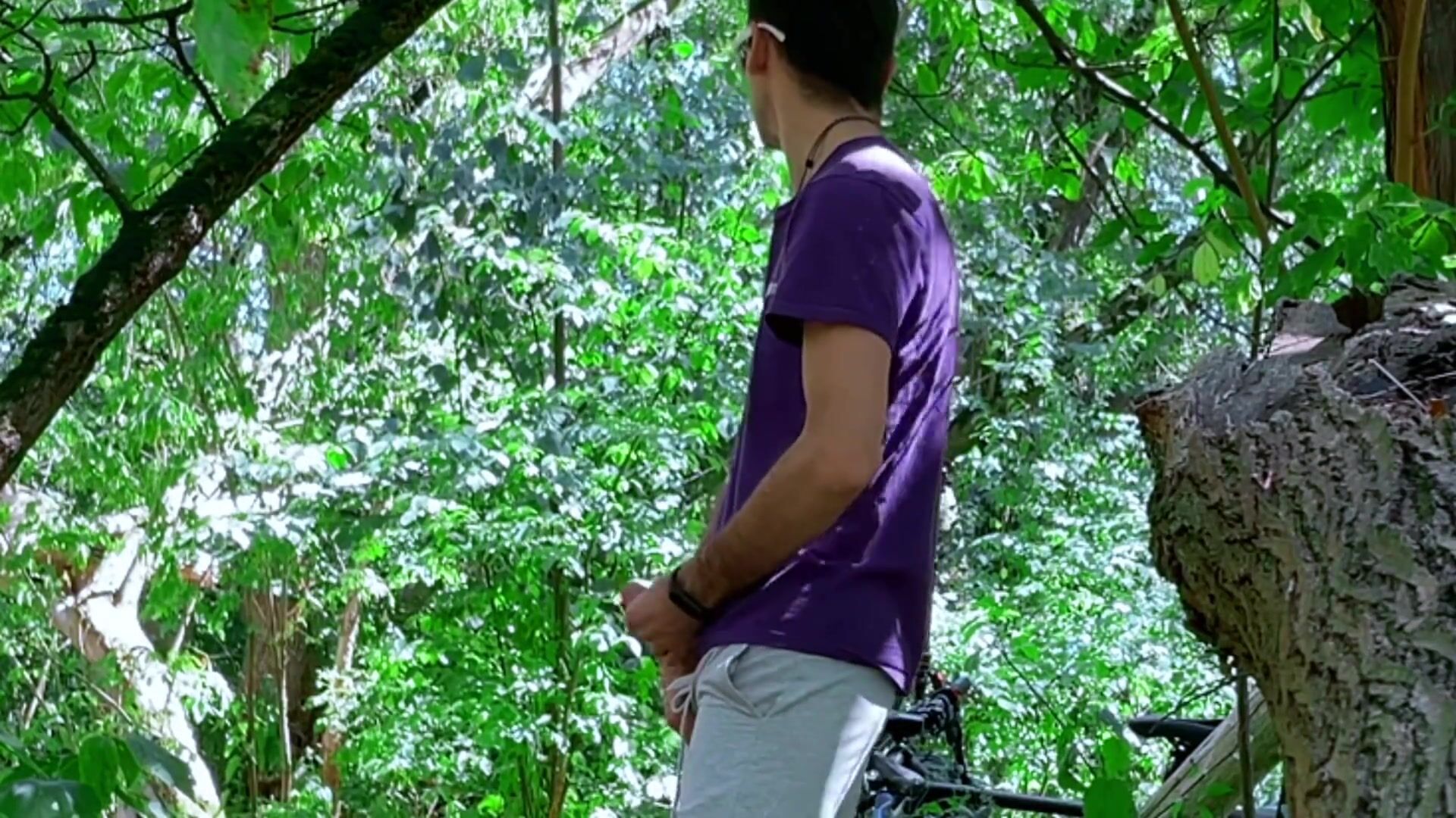 Парень дрочит хуй в лесу и зазывает прохожего на секс